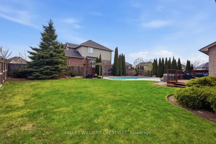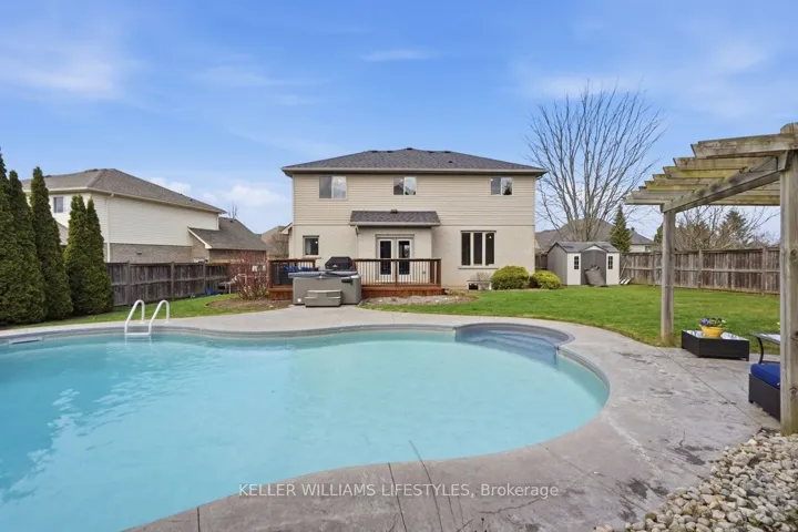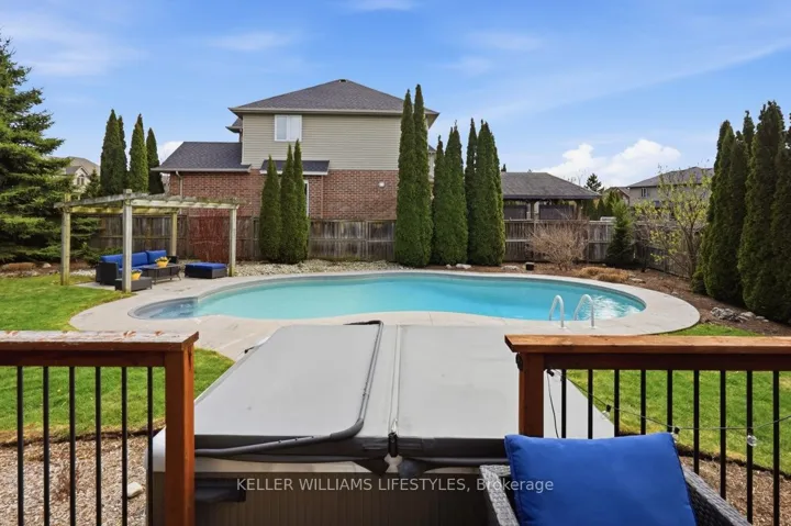 +"PublicRemarks": "Welcome to this exceptional two-storey home in the heart of Riverbend, one of London's most sought-after west-end communities, just steps away from the vibrant West 5 hub! Featuring 4 spacious bedrooms and 3 bathrooms, this beautifully designed home offers the perfect blend of comfort, style, and family living. Step inside to a bright, functional layout with generous principal rooms and plenty of space for both everyday living and entertaining. This home has been freshly painted throughout & features brand new carpet (April 2026) on the second level, offering a clean and modern feel that's completely move-in ready. Upstairs there is 4 well-sized bedrooms that provide flexibility for growing families, guests, or a home office. A spacious finished basement adds valuable extra living space-perfect for a rec room, gym, or media area, with flexibility to fit your lifestyle. The backyard is a true private retreat-complete with a salt water inground pool (security cover 3yrs, pump 3yrs, heater 2 yrs) and hot tub, creating the ultimate setting for summer entertaining or relaxing evenings at home. Additional peace of mind comes with a roof that is just 4 years old and an HVAC system that is only 5 years old, offering both efficiency and long-term value. Located just steps from the scenic Kains Woods Trails, this home offers immediate access to some of the area's most beautiful natural surroundings. Enjoy nearby parks and splash pads, perfect for families, along with some of London's top-rated schools. Premier shopping, dining, and everyday amenities are all just minutes away, making this location as convenient as it is desirable. With peaceful streets, exceptional outdoor spaces, and a strong sense of community, this is a rare opportunity to experience the very best of Riverbend living. Book your private showing today."