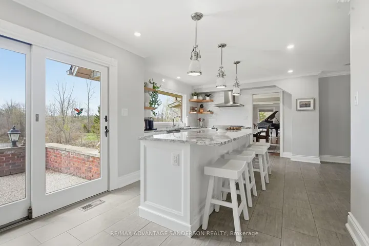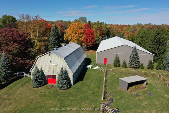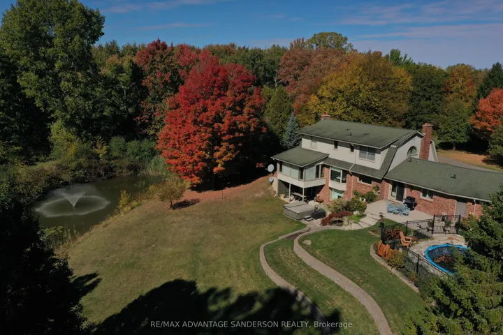 +"PublicRemarks": "Rare and unique 52.6 acre countryside estate in highly sought after location on Medway Road. This property has not been offered for sale in 44 years. Meandering 400 ft driveway bordered by mature maple, oak, cedar and birch trees. 2 story Dutch colonial home with walkout basement perfectly positioned to enjoy the natural surroundings. The property consists of 10 acres of arable land (currently rented for 2026), approx an acre of grassed horse paddock and a combination of pine forest, wetland and groomed Carolinian nature trails. Strategically backing in the westerly direction the home enjoys magnificent daily sunsets. From the winterized sunroom enjoy the views of the massive spring fed pond with 2 aeration fountains. The pond attracts a multitude of deer, birds and waterfowl including Canada geese, mallards, Hooded Merganser and Wood ducks. Five large Koi have called these waters home for 20 years. The box stall barn was originally a 10 stall barn but was converted to 6 oversized foaling stalls. The barn comes complete with tack room, shower stall and full upper level for hay storage. A large 70x160 pressure treated pole framed steel riding arena/drive shed is complete with large dressage mirrors. A rustic 3 stall steel barn with concrete bunker is now used for storage. A 16x32 terraced kidney shaped inground pool is flanked by flagstone and gardens. The home with approximately 3500 square feet of living space has been lovingly updated throughout the years. The living room features hand milled wide plank oak pegged flooring. The home has 2 spectacular stone wood burning fireplaces as well as a natural gas. A gas powered generator ensures you will never be left in the dark. The kitchen was renovated with granite countertops, white cabinetry and high end appliances. A cedar lined sauna was converted into a large change room for easy access to hot tub and pool. Perfectly located and close to all amenities. This is truly a private oasis to retreat, rest and relax."