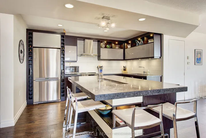 +"PublicRemarks": "Stop scrolling-this is the downtown condo that actually deserves your attention. Arguably the best two-bedroom layout in the Pinnacle Centre, with zero wasted square footage and a floor plan that just works. Perched above the city, west-facing, with 9-foot floor-to-ceiling windows, it catches that golden-hour glow that makes everything look better. The open-concept kitchen features a granite breakfast bar and-blessedly-full-size appliances. Both bedrooms are legitimate rooms with actual windows, while the primary suite is a total flex offering a walk-in closet and private ensuite. It's all tied together with wood flooring, designer light fixtures and thoughtful details like custom wall shelving and window coverings. You've got two full washrooms, a balcony with a peek at the lake and the ultimate downtown luxury: a coveted underground parking space. But the lifestyle doesn't stop at your front door. The building is basically an elite private club with 24-hour security and the legendary 30,000 sq ft Pinnacle Club: two gyms, indoor pool, hot tubs, saunas, basketball/tennis/squash courts, theatre, guest suites, and BBQ terrace. Set at the absolute centre of the universe. Steps from Scotiabank Arena, the Financial District, P.A.T.H. and Union Station. The Martin Goodman Trail is right across the street for your morning run by the water, and with the Gardiner, and the airport all right there, your commute just became a non-issue. This is stylish, smart, and finally a space that doesn't ask you to compromise on a single thing. Honestly, why are you still reading this? It's going to go fast."
