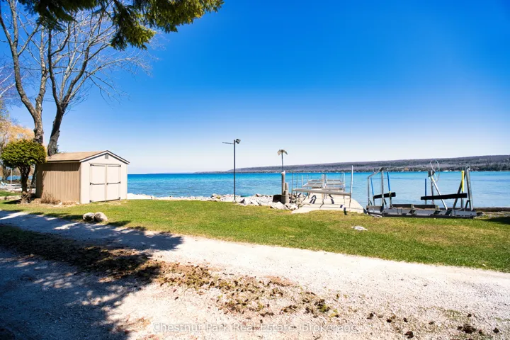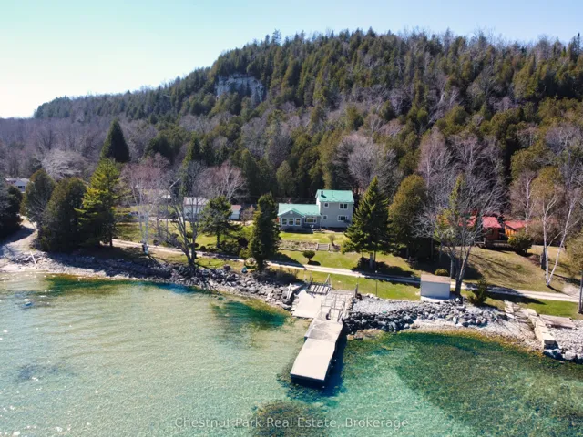 +"PublicRemarks": "One of the best waterfront opportunities on the market offering 200 ft of prime Georgian Bay shoreline with a perfect mix of sandy bottom and natural rock, your own private boat launch right from the property, close proximity to the Bruce Trail, and fully furnished, turn-key ready. The well built 2,400+ sq. ft. four season home features a stone and vinyl exterior, vaulted great room with fireplace, sunroom, four bedrooms including a main floor primary suite, and a large recreation room ideal for hosting family and friends. The property includes an in-ground heated pool with updated (2019) liner and limestone decking, a detached double garage with loft storage, and four exterior sheds for all your tools and toys. Quality construction includes a steel roof, updated windows, and spray foam insulation. Outside, enjoy manicured grounds with a sprinkler system, a concrete pier for wave protection, and a custom aluminum dock for boating and swimming. Located in desirable Hope Bay, close to Wiarton, Lion's Head, and Tobermory, and just three hours from the GTA."