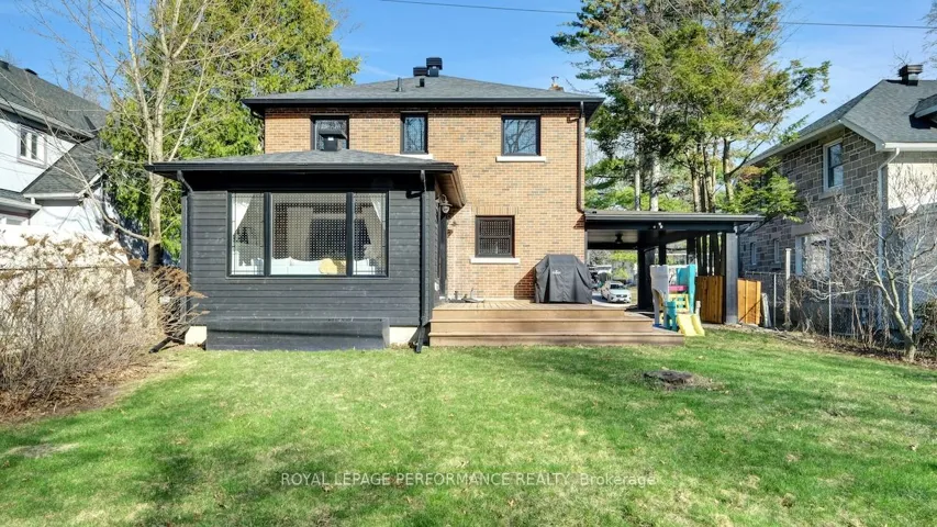 +"PublicRemarks": "Ideally located in a sought-after enclave in Riverview Park, this timeless 4bed/3bath red-brick detached home on a 186ft lot with no rear-neighbours is the perfect fit for the busy urban family who loves to entertain, doesn't want to compromise on modern finishes, appreciates a functional layout, and seeks easy access to the downtown core or the General Hospital/CHEO. Lovely front foyer with convenient mudroom. Bright and airy open-concept main living space with hardwood floors, cove mouldings, and picture window overlooking front garden. Absolutely stunning sun soaked main floor family room with wall-to-wall windows, french doors, electric fireplace and access to outdoor living area. Chef's kitchen with centre island with seating, gas stove, stainless steel appliances, quartz countertops, trendy backsplash, and farmhouse sink overlooking the backyard. Convenient main floor full-bathroom with charming vanity. Beautiful hardwood staircase with live edge banister. Spacious primary bedroom with wall-to-wall closets. Three additional well-proportioned bedrooms. Renovated main bathroom with oversized vanity, and subway tile tub surround. Lower-level features an additional living space, 2-piece bathroom, laundry area, and tons of room for all your storage needs. Covered parking with direct access to kitchen, perfect if you hate clearing snow off your car. What's not to love with a fenced backyard big enough to play soccer or a skating rink in the winter. Lovely west-facing deck with natural gas line for BBQ, perennial gardens, storage shed and mature trees. Walk to the kids park down the street, or to the Hurdman LRT Station. Easy access to the 417, Trainyards, Lycee Claudel, Hospital Campus, and to everything else the Nation's Capital has to offer."