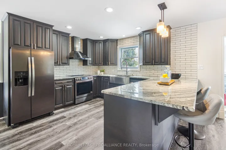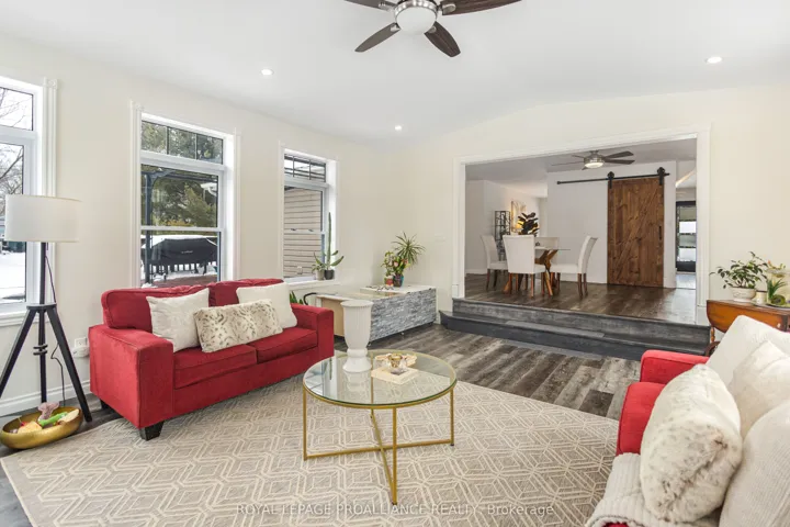 +"PublicRemarks": "Welcome to this wonderful family home set on a quiet road in beautiful Prince Edward County, offering just under 5 acres of manicured property and two impressive outbuildings. The main floor of this home includes a formal living room and a cozy den, both finished with hardwood flooring. The beautiful kitchen offers an abundance of quality cabinetry, granite countertops, tile backsplash, and a bright breakfast nook that is perfect for casual meals. The dining area off the kitchen flows into a bright sunken family room featuring a propane fireplace, stunning cathedral ceilings and windows making this space feel open and bright, creating a warm and inviting gathering space. The main level is completed by a convenient laundry area and a 4-piece bathroom. The second level offers a spacious primary suite with a walk-in closet and private 4-piece ensuite. Two additional bedrooms and another 4-piece bathroom provide plenty of space for family or guests. The full, unspoiled basement offers excellent storage and the potential to create a large recreation room or additional living space. Outside, the property showcases beautifully maintained grounds and gardens, mature trees, and a seasonal creek along the south side of the property. Enjoy the covered front porch, stamped concrete front walkway, rear patio, and an additional concrete entertaining area-perfect for relaxing or hosting gatherings. A standout feature of this property is the two detached outbuildings. The 28' x 40' insulated garage that, like the house, includes its own geothermal heating and cooling system and can accommodate up to four vehicles. There is also a large 30' x 60' Quonset hut, providing exceptional storage space for vehicles, equipment, or recreational toys. The property offers abundant parking and is surrounded by nature, with frequent sightings of birds, wild turkey, and deer. A truly unique property offering space, privacy, and incredible value."