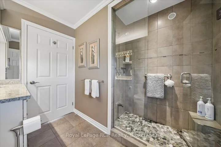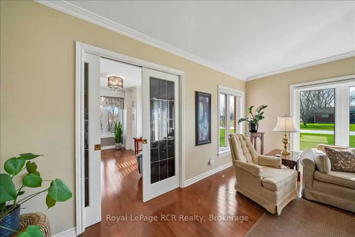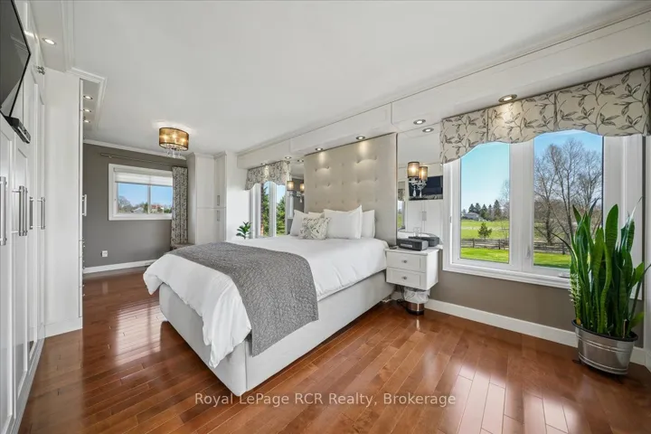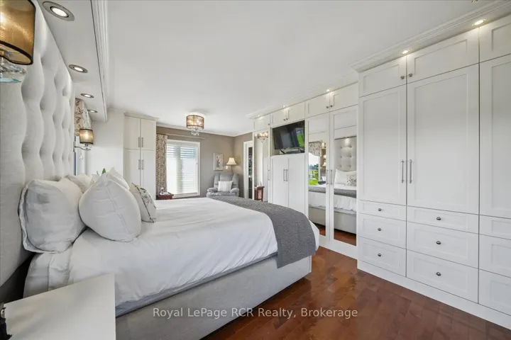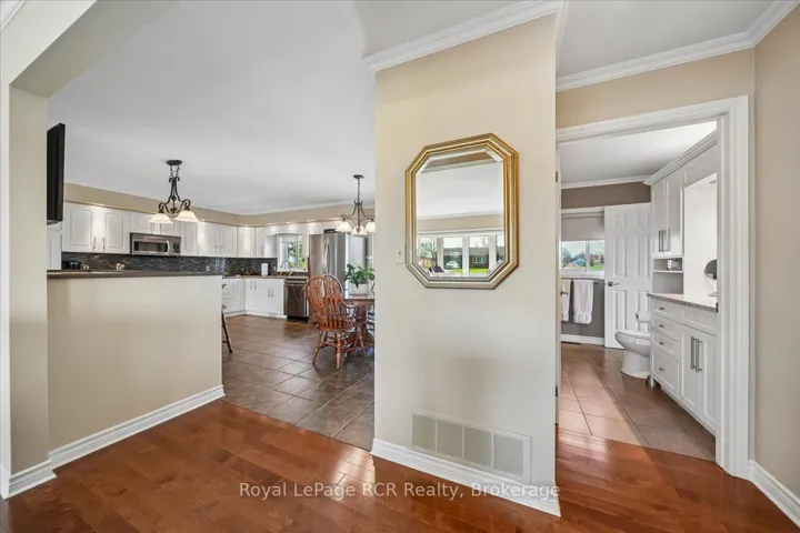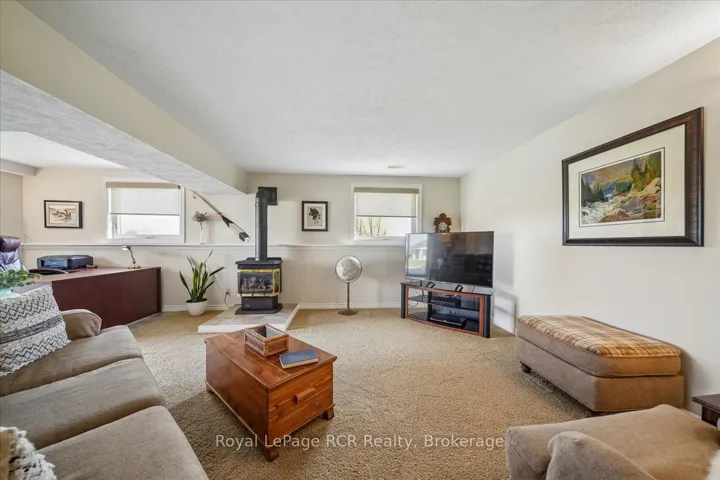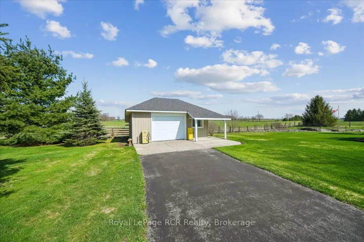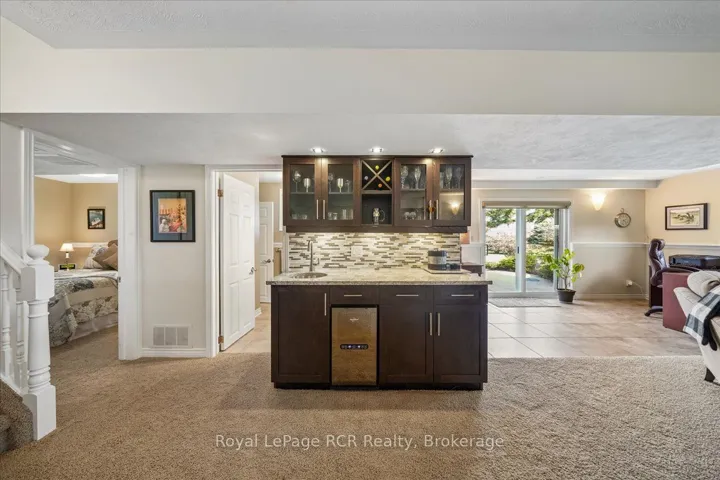 +"PublicRemarks": "This beautiful red brick bungalow offers a rare combination of functional workspace and serene natural beauty on a full acre lot featuring a private stream. Located within the scenic landscape of Grey Bruce, this property provides the quiet of country living with easy access to the amenities of Owen Sound and the shores of Georgian Bay. The home is designed for hobbyists and car enthusiasts, featuring an attached heated three car garage configuration. The upper level accommodates two vehicles with direct access to the main floor, while the lower heated garage provides space for a third vehicle plus significant additional storage and an entrance to the lower level. A separate 529 sq. ft. heated workshop with running water and a dedicated garage door offers even more utility for large scale projects and storage. Inside, the main level features rich hardwood floors and a kitchen renovated in 2018 equipped with quartz countertops, stainless steel appliances including an induction stove, and a french door fridge. The primary bedroom serves as a dedicated retreat with custom cabinets, pocket french doors, and a three piece semi ensuite. Practicality is built in with main floor laundry and premium Hunter Douglas blinds throughout. The lower walkout level is built for comfort and guests, centered around a large family room with a gas fireplace stove and a high quality wet bar. This level includes a second spacious bedroom with its own three piece semi ensuite bathroom. Both bathrooms in the home feature heated tile floors for added luxury. Outdoor living is elevated by a large composite deck with glass railings, providing unobstructed views of the backyard and adjacent farmers fields. This is a well maintained, versatile home that balances hobby space and relaxation perfectly."