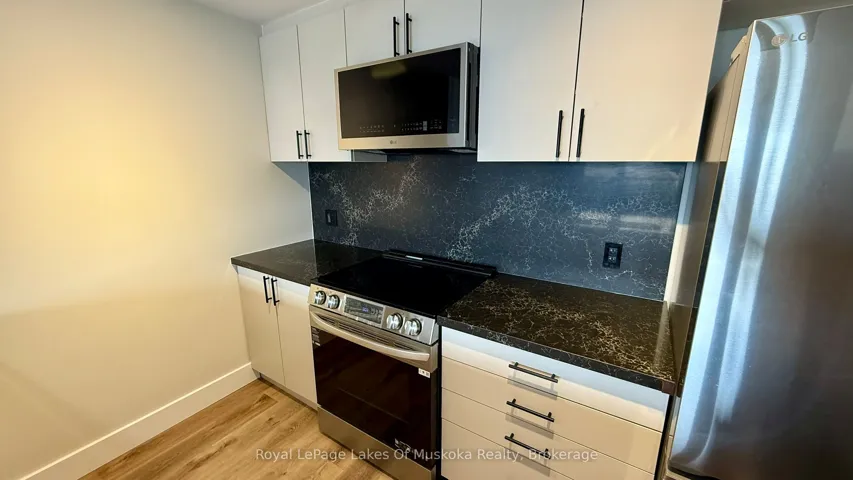 +"PublicRemarks": "Brand new, 2 bed, 2 bathroom condo for lease in the heart of Muskoka's resort area. This bright and modern condo offers stunning views overlooking Peninsula Lake and Deerhurst Lakeside Golf Course. Enjoy evenings with the cozy gas fireplace in the open concept living area with a walk out to a good sized deck and wonderful views. Primary bedroom also has a lake view, ensuite and walk-in closet. Second bedroom or den is larger in size and walks out to the main, full bathroom. Condo features quartz countertops and stainless steel appliances as well as in-suite laundry and hot water on demand. Walk out to your private patio and take in the peaceful surroundings of Muskoka. Residents have shared access to a private beach on Peninsula Lake. The property is conveniently located right next to Deerhurst Resort and Hidden Valley Ski Resort, providing easy access to golf, skiing, hiking, dining, and all the four-season activities Huntsville has to offer. Perfect for professionals, young couples, or small families."