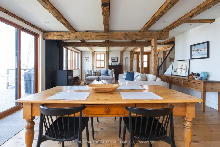+"PublicRemarks": "Tucked into the peaceful waterfront community of Northport, along the north side of the County, this circa 1836 two bedroom, three bath home offers a rare blend of heritage architecture and thoughtful, contemporary living, just 20 minutes from the heart of Picton. Inside, the home unfolds with warmth and ease. Rich wood tones, exposed beams and wide plank floors create a sense of grounded comfort, while the open concept living and dining spaces flow naturally toward a beautifully designed custom kitchen. Anchored by generous cabinetry, upscale appliances, and an expansive pantry, this is a space built as much for everyday living as it is for gathering. There is a cozy coastal quality to the home, shaped by conscious design choices that balance texture, and material in a way that feels both relaxed and refined. Just beyond, a back porch extends from the kitchen, an effortless transition to outdoor living that feels distinctly County. It is where morning coffee stretches into afternoon conversation, all overlooking mature gardens and uninterrupted views of the Bay of Quinte. Currently configured as a 2 bedroom, 3 bath home, the layout offers exceptional flexibility. A main floor primary suite could be created with ease, seamlessly connecting to the existing bath, an ideal option for those seeking long term, single level living without compromise. Upstairs, both bedrooms offer privacy and charm, each with their own sense of retreat. Outside, the property gently slopes toward the shoreline, where the Bay of Quinte reveals itself in its truest form: clear and endlessly inviting. Known for its excellent boating and fishing, this stretch of water offers a more natural, untouched waterfront experience. Fruit trees, established gardens, and a small barn for storage complete the landscape, while a attached garage provides additional space for a studio, workshop, or future conversion. A home with history, presence and the kind of setting that quietly speaks for itself."