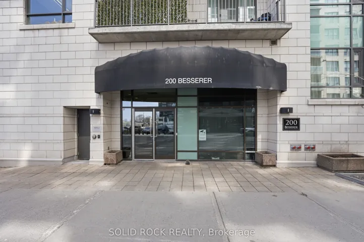 +"PublicRemarks": "Welcome to 200 Besserer St, Unit 910 - a beautifully renovated 695 sq. ft. 1-bedroom + den suite in the heart of downtown Ottawa, offering modern comfort and effortless urban living. This thoughtfully updated unit is truly move-in ready. Freshly painted throughout, it features new wide-plank waterproof flooring and a stylish feature accent wall that adds warmth and character. The kitchen has been tastefully refreshed with granite countertops, refaced cabinet doors with modern hardware, and a flexible island, creating a clean, sleek, and functional space for everyday living and entertaining. The open-concept layout includes a defined dining area and a spacious living room, offering an airy and comfortable feel. Floor-to-ceiling windows bring in abundant natural light, while the private balcony provides a stunning open view, including glimpses of the Gatineau Hills from the bedroom. The generously sized bedroom comfortably accommodates a king-size bed, with plenty of space for additional furniture, and custom built-ins provide excellent storage and organization. The versatile den is perfect for a home office, reading nook, or additional lifestyle space. The unit also includes a locker and underground heated parking, while the building offers a swimming pool, sauna, BBQ area, gym, and friendly staff. Enjoy full access to premium downtown amenities, with restaurants, transit, shopping, and recreation just steps away. A perfect blend of style, function, and location."