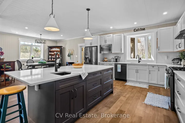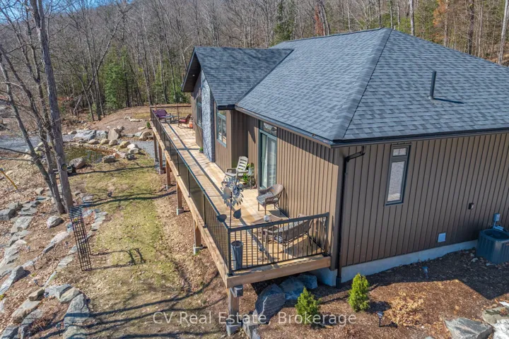 +"PublicRemarks": "Welcome to 1203 Burlmarie Road, an exceptional custom-built home offering refined living in the heart of Baysville. Ideally located just moments from the village core, this move-in-ready property sits on over an acre of beautifully landscaped land, directly across from Bastedo Bay.The standout feature is the beautifully finished main floor, thoughtfully designed to balance open-concept living with defined, functional spaces. Spanning nearly 2,000 sq ft, it offers two spacious bedrooms plus a versatile den or potential third bedroom. The expansive kitchen serves as the heart of the home, featuring generous workspace, backyard views, and seamless flow into bright living and dining areas-ideal for everyday living and entertaining. Adjacent, a sun-filled Muskoka room with southern exposure provides a warm retreat and direct access to wraparound decks at the front and rear, perfect for relaxing or hosting. A convenient main-floor laundry room and easy backyard access enhance functionality. Outdoors, the property impresses with granite retaining walls, a tranquil front-yard pond, and a gentle creek running through the private, tree-lined backyard. A large, level side yard offers ample space for recreation, gardens, or future use. Additional highlights include a spacious driveway with a designated area for a future garage or outbuilding, supported by an oversized septic system. Built with quality in mind, the home features ICF foundation walls, propane furnace, central air conditioning, HRV system, and a drilled well. The lower level includes a separate entrance and is roughed-in for additional living space, including plumbing for a future bathroom. Enjoy the best of Muskoka living with nearby lakes, beaches, and parks just minutes away, all while surrounded by nature-just over two hours from the GTA."