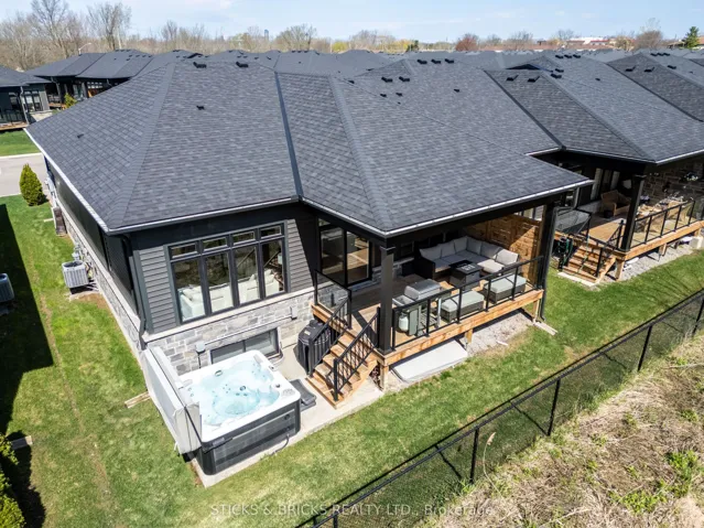 +"PublicRemarks": "This is more than an exceptional end-unit bungalow townhome it's a lifestyle. You will enjoy the privacy of no rear neighbours, backing onto the wooded oasis of the "Legends of Niagara Golf Course". Tee off time is anytime you want and just steps away. An entertainer's dream, the open concept allows for room to mingle and for the fun can spill over onto the private covered deck with ceiling fan, where one can enjoy the night sky in the relaxing hot tub. Loaded with carefully chosen upgrades like 6" engineered oak hardwood flooring, a living room with an integrated electric fireplace, a dining area a sleek gourmet kitchen equipped with quartz countertops, full height pantry, LG stainless steel appliances, a large island with seating and a convenient coffee station with beverage fridge. Get away from it all and relax in the primary bedroom with a walk-in closet and five-piece ensuite offering the convenience of double sinks, a glass shower and deep tub. The versatile second bedroom can be an office, with access to a four-piece bathroom with quartz countertop. Strategically located, the laundry facilities are on the main level. The lower level expands the living space with a bright family room boasting pot lights and a large window, a third bedroom with a walk-in closet and ensuite privilege to a three-piece bathroom. A flex space can be a den/office or extra storage. Panoramic windows invite the sun in and privacy is at your fingertips with motorized Hunter Douglas blinds. The double garage offers inside entry and an auto door opener. Close to the upcoming South Niagara Hospital, sports park, ice arena, public boat launch and 40km of a bike and jogging trail along the Niagara Parkway, the location affords no end to recreation opportunity. So easy to move into, it is spotless and well appointed. It's time to do something for yourself, come and enjoy the lifestyle!"