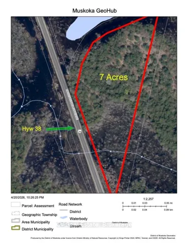 +"PublicRemarks": "A rare opportunity to own 7 acres of scenic, high-potential land in the heart of Muskoka Lakes in Bala. With year-round access via Provincial Highway 38 and hydro available at the lot line, the property offers excellent accessibility and development potential. Zoned RU2 and free of Environmental Protection (EP) overlay despite the presence of natural waterways, the land provides exceptional flexibility for rural uses. Permitted uses include residential dwelling, agricultural uses, bed & breakfast, open space recreation among many others (see Muskoka Lakes Zoning By-Law). Located just 5-7 minutes from Bala with convenient access to local shops, restaurants, and parks, and approximately 15 minutes to Highway 400 (about 2 hours from the GTA). Surrounded by Muskoka's renowned natural beauty with lakes, forests, and wildlife, this property is ideal for investors, builders, or those seeking a private retreat with long-term upside. HST applies to the sale price."