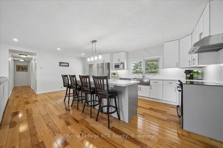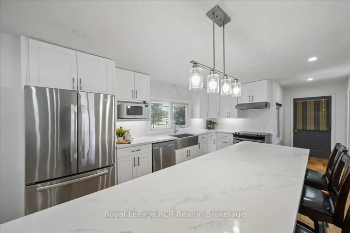 +"PublicRemarks": "Discover a versatile lifestyle in Springmount, where residential comfort meets rare commercial potential. Located just minutes from the Owen Sound Harbour and the trailheads of Jones Falls, this property offers an ideal balance for families or those looking to offset their mortgage. The main residence is designed for effortless one floor living, featuring a bright, open layout that connects the dining and living areas. The updated kitchen serves as the heart of the home, complete with durable quartz counters and a massive 10 foot island perfect for morning coffee or weekend meal prep. Three well proportioned bedrooms and a full bathroom complete the main level. The outdoor space is built for summer, featuring an inground pool and a gazebo accessible from the main living room. For extended family or guests, the property includes a functional in-law suite equipped with its own kitchen, living room, den, and 4 piece bathroom. This secondary suite also features a private deck off its kitchen that overlooks your own personal pond, providing a dedicated outdoor space for the occupants. The detached commercial building presents a significant income opportunity or a professional base for a home business. This space includes a retail storefront, two private offices, and an attached garage with 10 foot ceilings. With plenty of parking and high visibility near the gateway to the Bruce Peninsula, this setup is perfect for various ventures. Mechanical needs are well met with two attached 1.5 car garages providing ample storage. This location ensures you are always a short drive from the shopping and amenities of the Owen Sound River District and Harrison Park."