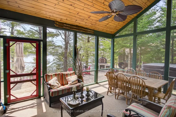 +"PublicRemarks": "Classy Crystal Lake. This turn-key, custom ICF 4-bedroom, 3-bathroom waterfront home was completed in 2007 and may just have everything you're looking for. Fully winterized and furnished with top-tier products throughout its 2500 sq ft of living space. A fabulous 0.64 acre lot with exceptional privacy and directly across the road is a private 67 acre forest to explore. A gently sloping pathway leads to a fabulous waterfront setting with a touch of hard-pack sandy beach - yet deep diving off the dock and 105 feet of owned shoreline w/a lovely lakeside change room w/power. Recent upgrades include; landscape stonework, a concrete woodfired pizza oven, an outdoor salt water hot tub, a 5000 lb steel boat lift, a PWC lift, a new dock, a 2-tier sun deck, and custom wood furniture by Artemano. Big lake views with a full SE exposure. All season sunrises, spectacular moonscapes, and 7 PM sun on the dock in the summer- yet only steps away from shade. The open-concept kitchen w/Corian countertops looks directly into an expansive dining and living room setting. Soaring 16ft cathedral ceilings and a natural stone, wood-burning fireplace really set the tone for this spectacular build which creates lots of natural light. Crystal is a spring-fed rock & pine glacial lake with low cottage density. Explore its many bays and over 30 kms of stunning shoreline. Excellent fishing. Easy access to the 5 Points Crown Land multi-use recreational trail system. On water marina. Kinmount and its amenities are 30 mins away. Around 45 mins to Bobcaygeon/Fenelon Falls/Minden. 1 hr to Sir Sam's Ski Hill. Good cell and internet options. 2.5 hrs from the GTA. This stellar all-inclusive property has too many features to list here. The outstanding attention to detail and the pride of ownership is evident. Above average privacy on a dead-end year-round municipal road that includes a detached garage with an upstairs 3-season games room. See the Virtual Tour."