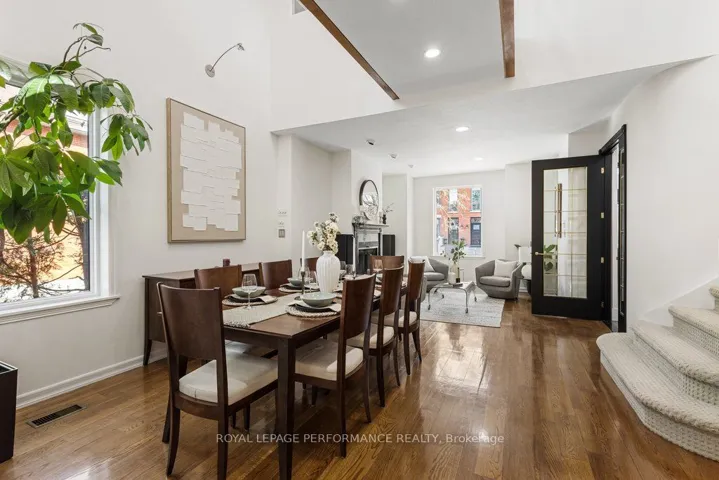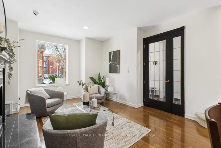 +"PublicRemarks": "A rare convergence of historic soul and modern engineering, this architectural masterpiece arrives on the market for the first time in 27 years. Situated in the prestigious Golden Triangle on an exceptionally deep lot, the residence sits just 100 meters from the Rideau Canal-a UNESCO World Heritage Site. Meticulously re-imagined as a sun-drenched sanctuary, this historic gem honours its heritage while embracing a bold, contemporary design. The home's centrepiece is a spectacular open staircase spanning three levels, framed by triple-pane windows that summon light from every direction. From soaring ceilings to curated finishes, this 4-bedroom, 3-bathroom residence reflects a commitment to quiet, sophisticated living. The experience begins in a marble-tiled foyer leading to expansive living spaces designed for grand-scale entertaining. The custom kitchen strikes a flawless balance between sleek modernism and industrial edge, featuring high-end appliances and a granite island. This culinary hub flows into a family room addition that opens to a private deck and a lush, Welwyn Wong designed garden. This deep outdoor oasis is a rare find, featuring mature trees, vibrant plantings, and a gas fire pit perfect for evening gatherings. Upstairs, the primary suite is a true retreat, boasting a newly updated ensuite and a private balcony overlooking the serene grounds. A versatile second room on this level, also with a private balcony, adapts as an executive office, bedroom, or yoga studio. The third floor offers two additional bedrooms-one a full suite with its own balcony. Below, the lower level provides rare future potential with high ceilings and a pristine, dry environment. Crowned by a new metal roof, rarely does a property of this scale and integrity become available. This is a once-in-a-generation opportunity steps from Parliament Hill, iconic landmarks, Lisgar Collegiate, and the University of Ottawa. This is urban luxury at its finest."