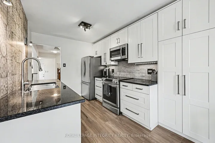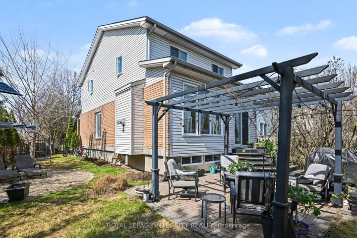 +"PublicRemarks": "Highly sought-after renovated 3-bedroom 2.5-bathroom end unit townhome ideally situated on the largest lot on the street, siding directly onto a park, a dream setting for families! This spacious home is bright and sunny as it features large windows throughout and gets flooded with natural light throughout the day thanks to the desirable southwest backyard exposure. This home boasts a larger than usual layout with a main floor living room, dining room and family room, as well as an eat-in kitchen and a powder room. The second level features a large primary bedroom with a modern 4-piece ensuite bathroom and a walk-in closet, as well as two additional bedrooms and a chic full bathroom. The basement rec room has been recently refinished (2026) with new luxury vinyl flooring and bright lighting, with additional storage and a laundry area. The expansive lot offers more outdoor space than comparable units, and sits on a quiet family-friendly street. Enjoy summer evening BBQ's in your backyard oasis! The huge fully fenced backyard features a large patio with a pergola, lots of trees for added privacy, a space for a 16 foot wide above ground pool (included, currently stored in the backyard) and a storage shed. Only steps away from the new Farmboy grocery store and a wide array of local amenities, shops, and dining. Enjoy easy access to nearby parks and scenic walking trails along a beautiful creek and ponds, ideal for dog walkers and nature lovers. Short 4-minute commute to the 417. Don't miss the opportunity to own a move-in ready home that truly offers the best of location, space, natural light, and parkside living! Ideal for growing families or those seeking convenience without sacrificing space. Roof 2018. Furnace 2022. Book your showing today! 48 hours irrevocable on offers."