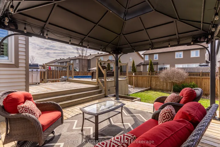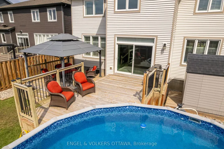 +"PublicRemarks": "Thoughtfully designed and carefully cared for, this rare 4+1 bedroom Tartan Gibson model is located in a sought-after, family-friendly community within walking distance to schools and the fitness trail. The sun-filled main level offers 9-foot ceilings, hardwood floors, and a functional layout featuring a formal dining room, family room, and an open-concept kitchen and living area ideal for everyday living and entertaining. The kitchen is equipped with a large quartz island, gas stove, and ample pantry storage, while inside entry from the double car garage leads to a practical mudroom nook. Upstairs, four generous bedrooms include a spacious primary suite with a walk-in closet and a 5-piece en-suite with a soaker tub and walk-in glass shower, along with a second full bath and convenient second-level laundry. The lower level adds valuable living space with pot lights throughout, a large rec area, ample storage, and a spacious bright bedroom featuring an enlarged window, soundproofing, and a walk-in closet, complemented by a newly finished bathroom with heated floors and a modern glass shower. Outside, the fully fenced, south-facing backyard features a pool, expansive two-tier deck, gazebo, and natural gas BBQ hookup. Additional highlights include freshly repainted walls in on-trend tones, updated doors and trim with modern black hardware, customizable LED soffit lighting on the front exterior, and tasteful hardscaping with an interlock pad enhancing curb appeal."