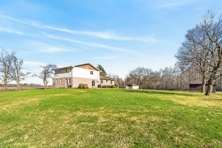 +"PublicRemarks": "1376 MACDONALD ROAD, is a spectacular 25 acre HOBBY FARM with a beautiful custom built executive home, 4 + 1 bedroom, 4 bathroom house, perched high and back off the road accessed by a long newer quality asphalt/paved drive, lined with elegant lampposts /loads of parking - elevated for a panoramic view of surrounding countryside -serviced with TOWN WATER (brings the potential of future development). Acreage with approx 3 or 4 acres treed (make your own maple syrup), plus some farmland - neighboring farmer works it. Very picturesque with rolling topography, very private, yet open. Real curb appeal with interlock patio both front and back. Very well maintained split level, plenty of strip hardwood flooring, carpeting on bedroom level, full luxurious ensuite, walk in closet, plus a 4 piece common bathroom, all bedrooms are spacious and sun filled, formal dining room, main floor family room with corner fireplace, patio doors out to a large interlock west facing patio, large mud room off inside entrance from the double attached garage, bathroom as well, direct access to basement level from garage, large spacious rec room, bedroom and powder room on the lower level, functional layout for the kitchen with stove top island, loads of counter top & cupboard space all with an eye-shot of the family room. A very efficient Geo-thermal ground source heat pump keeps utility cost down, most windows about 6 or 7 years, shingles in great shape - two out buildings, one being a single garage and the other is a garden shed- shopping and all amenities are only a kilometer or 2 away - so convenient - OPEN HOUSE SATURDAY MAY 2nd, 2 TO 4 PM"