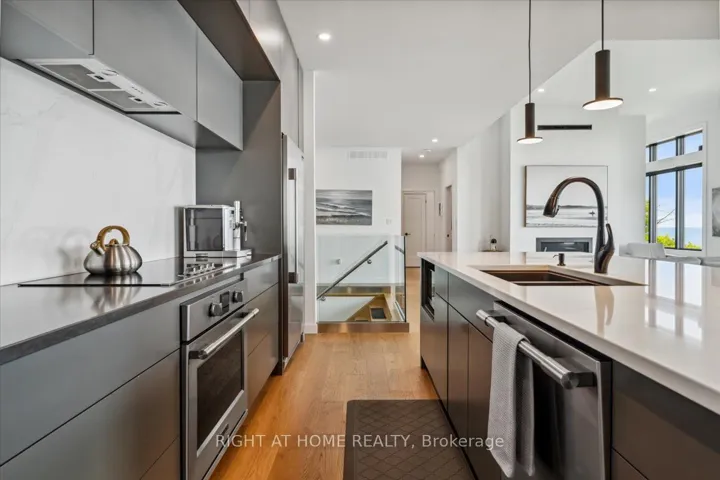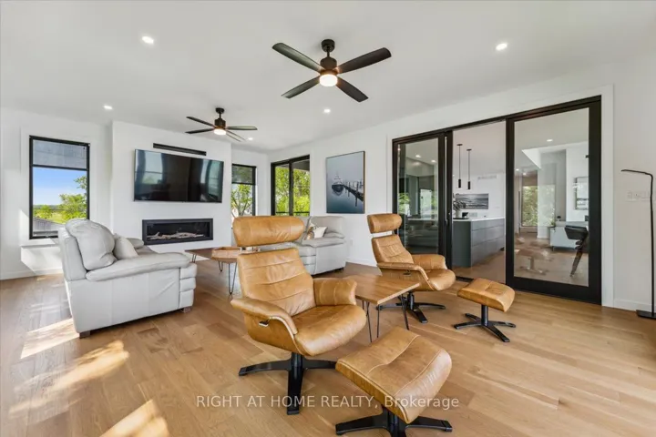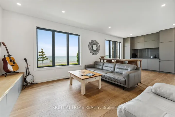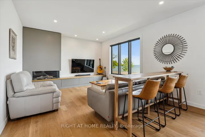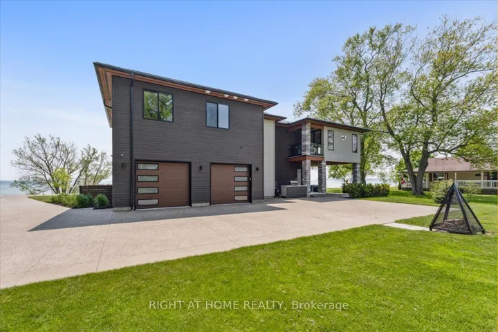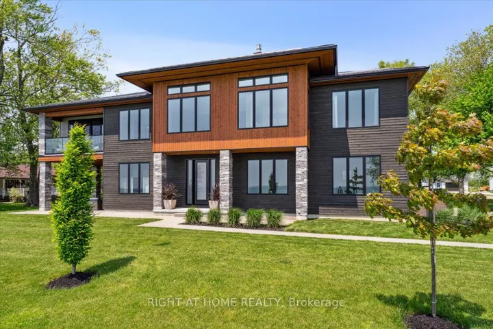 +"PublicRemarks": "Wake to the rhythm of Lake Erie and uninterrupted waterfront views at 17 Bluewater Parkway, a refined lakefront retreat in Haldimand County designed for those who value privacy, design, and connection to nature. Defined by clean architectural lines and expansive glazing, the home is filled with natural light, with wall-to-wall windows framing the lake at every turn. Engineered hardwood flooring and soaring 9 and 11-foot ceilings set a tone of understated luxury, while multiple living spaces, each anchored by its own fireplace create warmth and versatility throughout. The upper level is designed for both everyday living and elevated entertaining. A European-inspired kitchen features sleek cabinetry, quartz surfaces, premium appliances, and an oversized island, flowing seamlessly into the dining and living areas. A sunroom with a third fireplace extends the living space, opening to a private balcony where panoramic water views and evening sunsets take centre stage. The primary suite offers a quiet, private retreat with walk-in closet and ensuite, complemented by a flexible studio space ideal as a home office or additional bedroom. A guest bedroom and full bath on the main level provide comfort and privacy for visitors. Function meets lifestyle with an in-floor heated garage, a detached two-car garage, and an expansive aggregate driveway-perfectly suited for vehicles, recreational equipment, and waterfront living. Finished in Maibec siding with stone accents and a durable metal roof, the home reflects a commitment to quality and longevity. Located within easy reach of the GTA yet offering a true sense of escape, this is a rare opportunity to experience lakefront living without compromise."