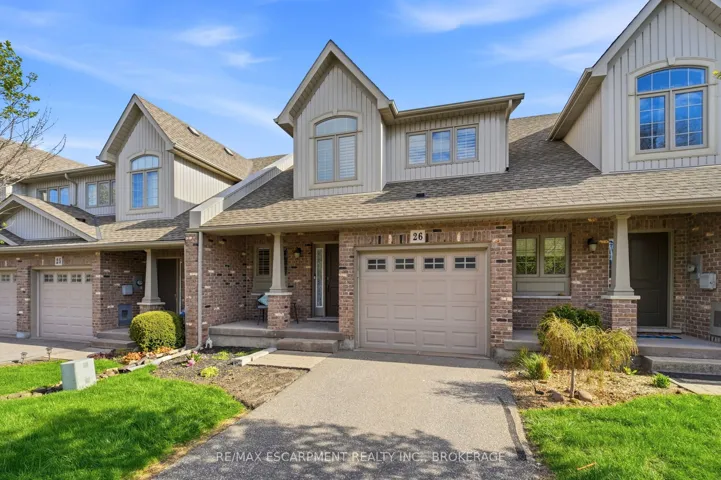 +"PublicRemarks": "There's a particular kind of home that makes life feel effortlessly organized, and 26-7 Gibson Place is exactly that. Positioned moments from the QEW and within easy reach of the Meridian Centre, the Performing Arts Centre, wine routes, and championship golf courses, this meticulously kept executive townhouse puts the best of St. Catharines at your doorstep. Step inside and the attention to detail is immediate with California shutters, nine-foot smooth ceilings, and a floor plan that flows with real intention. At its heart is a kitchen that earns the word stunning: abundant cabinetry, a centre island with breakfast bar, a sleek backsplash, under-cabinet lighting, and stainless steel appliances. The dining and great rooms rise under vaulted ceilings, anchored by a three-sided mosaic-tiled fireplace and finished in engineered hardwood, with a large deck just beyond for easy outdoor living. A powder room and laundry with upper cabinetry complete the main floor. Upstairs, the primary bedroom offers extra closets and ensuite privileges, a second bedroom provides flexibility, and an open loft overlooking the great room below is the perfect perch for reading or unwinding. Condo fees cover lawn care, snow removal, water, a sprinkler system, and parking, giving you something increasingly rare: your weekends back. Floor Plans at the end. *First exterior shot is digitally landscaped*"