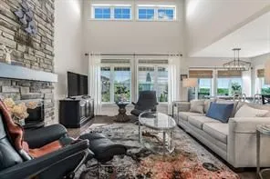 +"PublicRemarks": "Welcome to 209 Snowberry Lane, an exceptional 3,160 sq. ft. bungalow set on a beautifully landscaped corner lot in the prestigious Cobble Beach Golf Resort. Enjoy stunning views of Georgian Bay and the golf course in this truly turn-key home designed for both luxury and comfort. Step inside to a breathtaking great room featuring soaring 16-foot coffered ceilings, a dramatic floor-to-ceiling stone gas fireplace and an abundance of natural light. The gourmet kitchen is a showstopper, complete with a large entertaining island, extensive cabinetry and drawers, sleek quartz countertops, premium stainless steel appliances and a custom coffee bar perfect for your morning routine. The dining area seamlessly walks out to a private deck and yard, creating the ideal space for outdoor living and entertaining. Retreat to the primary bedroom oasis, featuring a spa-inspired 5-piece ensuite with double sinks, a glass-enclosed shower and a relaxing soaker tub. Enjoy direct access to your private deck, perfect for unwinding at the end of the day. A versatile second bedroom offers flexibility as a guest room or home office. The fully finished lower level expands your living space with two additional bedrooms, a 4-piece bathroom and a cozy family room. Two unfinished rooms provide endless potential for a workshop, hobby area or future customization. The double-car garage is outfitted with durable epoxy floors, generous storage and convenient interior access to the laundry room. Enjoy resort-style living with access to golf, tennis courts, a beach club, dining, scenic trails and more, all within this sought-after community."