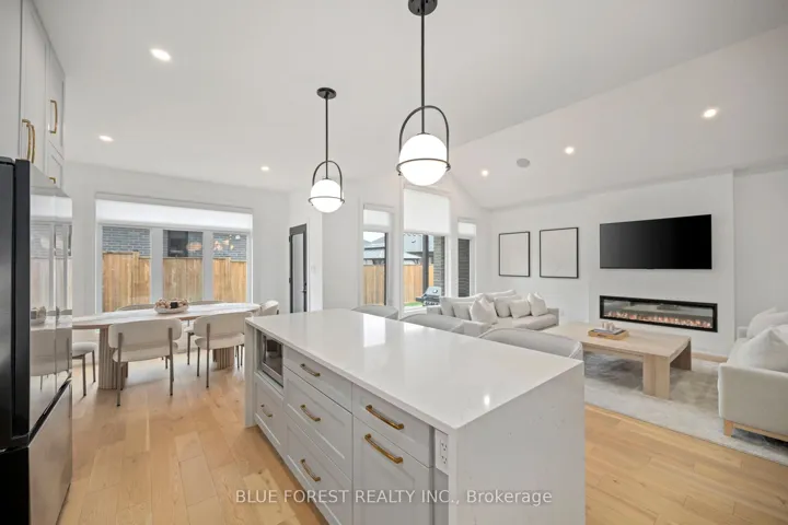 +"PublicRemarks": "Welcome to The Bungalows of Daventry, an exclusive vacant land condo community by Werrington Homes, in Kilworth Heights Neighborhood. Just minutes west of London & surrounded by scenic trails, parks, & top rated schools, this Sonoma model offers one of the largest layouts, featuring over 2,500 sq ft of living space with 2+2 bedrooms, 3 bathrooms and a double garage. The elegant exterior combines stone, brick and hardboard accents with a covered porch complemented by a double wide concrete driveway. Inside, a striking foyer with 12-foot ceilings welcomes you, featuring engineered hardwood floors, custom millwork & sophisticated lighting. The grand living room showcases an open-concept design adorned with large oversized windows filling the space with an abundance of natural light, beamed ceilings, and a stunning fireplace feature wall. Adjacent is a large kitchen complete with ceiling height cabinetry, calacatta quartz counter tops, an expansive waterfall island, and professionally grade appliances. The dinette provides access to an impressive rear covered porch complete with a gas line and fully fenced backyard with paver stone patio and green space. The primary suite offers a serene retreat complete with a luxurious 5-piece ensuite, including a walk-in glass shower, free standing tub, double vanity and a large custom-designed walk-in closet. A well-appointed office at the front of the home that can be used as an additional bedroom, a stylish 4-piece powder room, and a thoughtfully designed laundry/mudroom with stackable washer and dryer, built-in cabinetry, bench seating and garage access complete the main level. The fully finished lower level features raised ceilings and four oversized egress windows is an entertainers dream with a spacious rec room, 2 additional bedrooms and 3-piece bathroom. Monthly condo fee is just $85 & includes maintenance of common elements such as green spaces & snow removal on the private road."