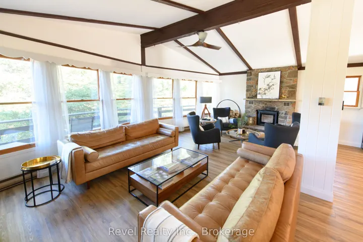 +"PublicRemarks": "RETREAT PROPERTY: 100 acres in the breathtaking Grey Highlands, an exceptional rural property offers a rare blend of privacy, natural beauty, year-round comfort, & versatile retreat potential. Mature forest, wetland areas, gardens, and a serene private pond create a peaceful, secluded setting, yet remain just minutes from Beaver Valley, premier ski destinations, Lake Eugenia, nature trails, and charming nearby villages. The spacious three-storey fully renovated residence offers approximately 4,245 sq ft of living space, with five bedrooms and 4 + 2 bathrooms. Designed for both everyday living and entertaining, the home features generous gathering areas, a wood-burning fireplace in the great room, a propane fireplace in the lower level, a sauna, & inviting spaces to relax throughout every season. The grounds provide flexibility, with zoning that permits spa use and a naturally diverse landscape of wooded, cleared, and wetland areas. Six campsites, four with electrical service and two without, offer additional options for recreational, guest, or commercial use. An on-site outbuilding known as Highland Hall adds even more potential, featuring two 2-piece bathrooms, a kitchen, & a striking floor-to-ceiling stone wood-burning fireplace, making it well-suited for a studio, creative workspace, gathering space, or retreat-related use. Additional features include an inground pool, hot tub, airplane hangar with no active or usable runway, double car garage, several storage buildings, EV charger, parking for 20+ vehicles, extensive electric, water, septic, and drainage infrastructure, and a poured concrete patio surrounding the hall and pool. A large lavender and vegetable garden creates a tranquil space for reflection and connection with the natural surroundings. A rare opportunity to own a substantial Grey Highlands property with a fully winterized home, extensive amenities, and extraordinary potential in one of the area's most sought-after four-season destinations."