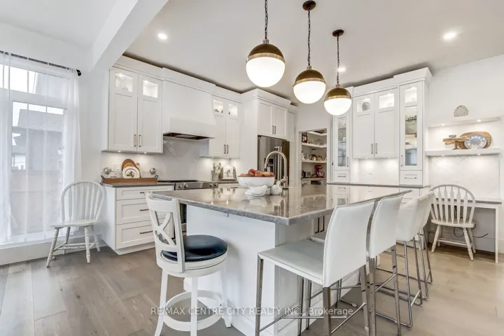 +"PublicRemarks": "Exquisitely custom built ten years ago from the ground up (on original foundation walls) and with 9' added to the footprint, the fastidious sellers made certain this gorgeous family home had all the bells and whistles to exude a thoughtfully warm and contemporary feel throughout. There are so many "WOW" factors from the moment you step into this house: the exciting open concept main level encourages large family gatherings and entertaining en-masse anchored by a true gourmet kitchen and large dining room. Soaring ceiling heights, Crown mouldings, an abundance of recessed lighting and gleaming hardwood floors are just a few of the highlights. The lower level is a true paradise for any sports and/or movie enthusiast with a huge entertainment area, side-by-side wall mounted and independently tilting televisions, Sonos soundbar, subwoofer, built-in speakers. Located directly across from Arlington Parkette on a wonderful little cul-de-sac, this fabulously located home is also just mere steps to The Leo Baeck Day School, Cedarvale Park, tennis courts, Phil White Arena. Extensive front landscaping includes trees, plants, an irrigation system, landscape and driveway lighting."
