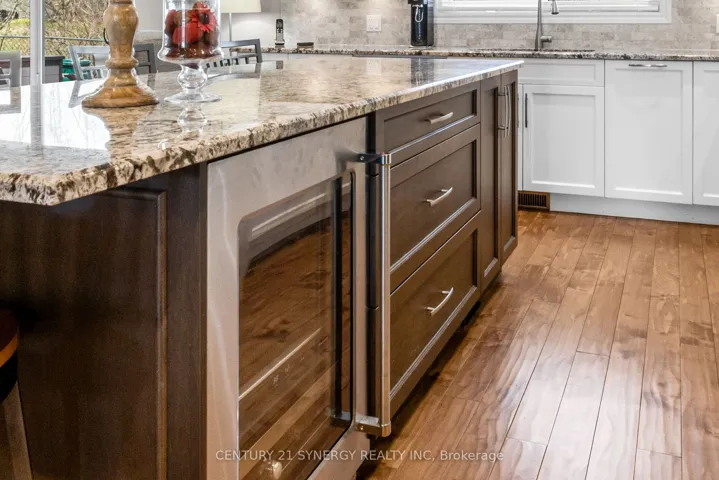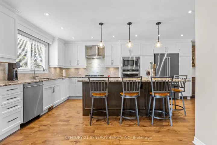 +"PublicRemarks": "This beautifully updated two-storey home showcases exceptional pride of ownership throughout and features a stunning professionally remodelled main level designed for modern living. Nestled on a quiet crescent in one of Ottawa's most desirable west-end communities, this move-in ready property offers a private backyard with no rear neighbours and impressive curb appeal.The heart of the home is the high-end chef's kitchen, complete with a large centre island, extended cabinetry, granite countertops, and premium appliances throughout, including a built-in wall oven, gas cooktop, and wine chiller fridge. Thoughtfully designed for both everyday living and entertaining, the main level also offers elegant remodeled open concept living and dining rooms, a warm and inviting family room with natural gas fireplace, convenient main floor laundry, hardwood flooring throughout, and a redesigned staircase that adds a refined custom touch. A built-in china cabinet and buffet with quartz counters provide both style and functionality. Upstairs, you'll find generously sized bedrooms and beautifully renovated bathrooms, including a luxurious primary ensuite featuring a spacious walk-in rainfall shower and double quartz sinks. The additional main bathroom has also been tastefully updated with quality finishes. The finished lower level adds valuable extra living space, perfect for a recreation room, home gym, or office. Outside, enjoy the newer patio, interlock surround walkway extending from the driveway to the backyard, and a peaceful private setting with no rear neighbours. A rare offering that combines quality upgrades, timeless style, and true pride of ownership-this is a home that shows exceptionally well and is sure to impress."