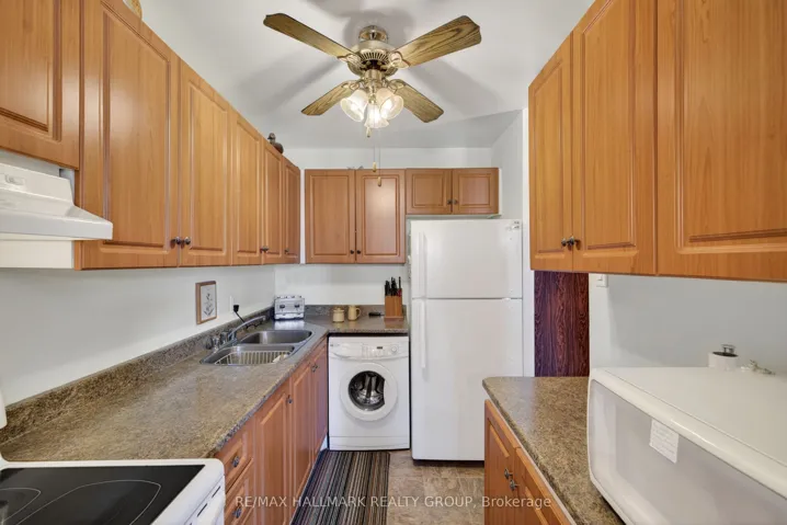 +"PublicRemarks": "A RARE FIND! Spacious 3-bedroom, 2-bathroom corner unit on a lower floor (no long waiting for the elevator) offering the convenience of IN UNIT LAUNDRY! YES WE HAVE A WASHER AND DRYER INSIDE THIS CONDO. LONG TIME OWNER HAS CAREFULLY UPDATED AND MAINTAINED HER CONDO. NEWER KITCHEN AND NEW MAIN BATHROOM, MAPLE LAMINATED FLOORS IN HALWAYS AND 3 BEDROOMS. This bright, south-facing apartment (no noise from the highway) features in-unit laundry (rare in this building), newer windows, and a large private balcony facing south perfect growing flowers/ herbs, for relaxing or entertaining. We also have a wall air conditioning unit for your comfort. The primary bedroom has an ensuite bathroom , so convenient. The unit includes underground parking no 172, and access to an impressive range of building amenities, including a gym, indoor pool, tennis court and party room. All utilities - heat, hydro, and water are included in the condo fees. Ideally situated in a highly convenient location, you'll find a wide variety of shopping, dining, and entertainment options just minutes away, along with quick access to the highway. Within walking distance to public transit, shopping centres, parks, and schools. This home offers both comfort and exceptional accessibility. flexible possession."