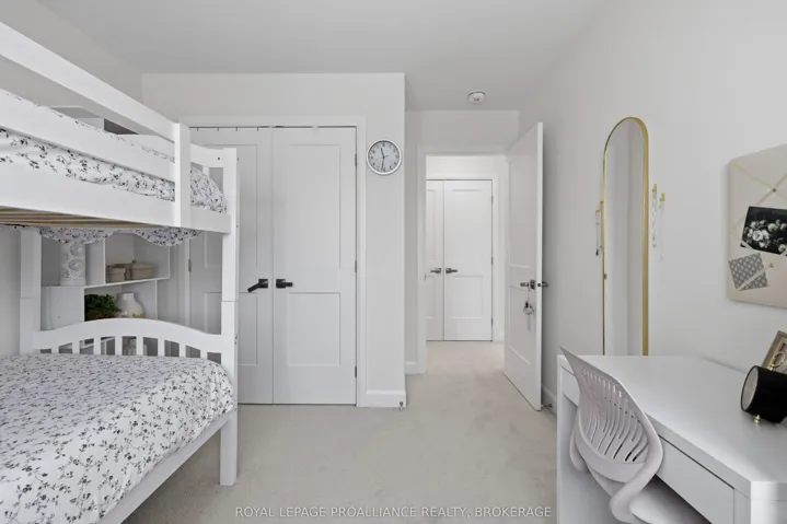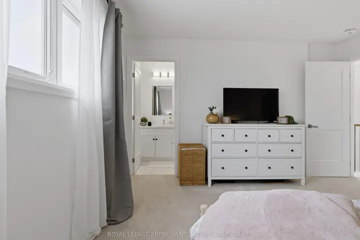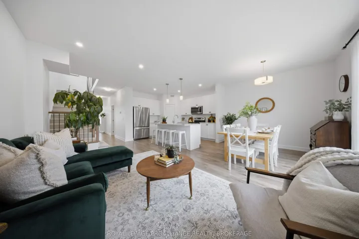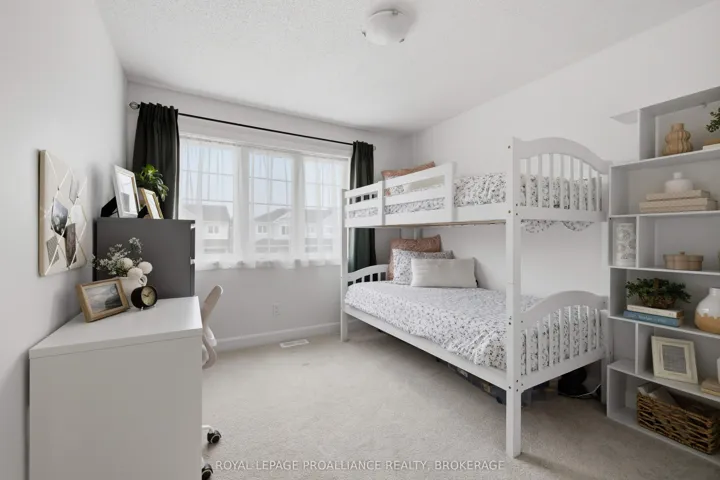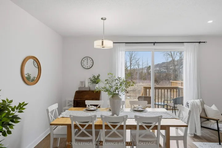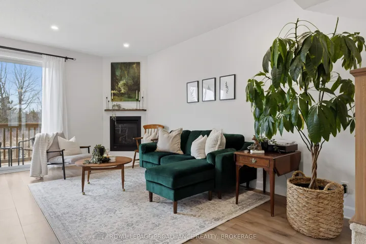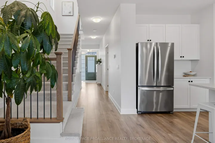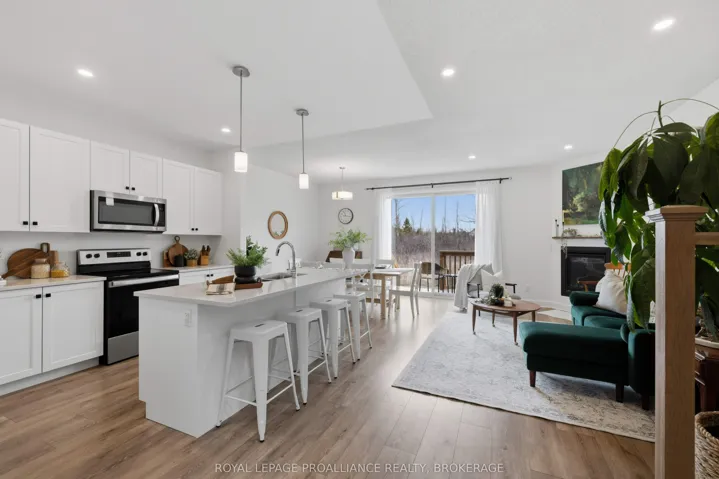 +"PublicRemarks": "Welcome to this better-than-new home in Kingston's sought-after Woodhaven neighbourhood. Just two years old and fully finished from top to bottom, this spacious two-storey offers exceptional move-in-ready living with 2000 square feet of finished living space over three floors. The bright main floor features gorgeous neutral decor and a modern open-concept layout anchored by a stunning white kitchen with quartz countertops and ample cabinetry with corner pantry. The living area is warm and inviting with a cozy gas fireplace, while durable laminate flooring runs throughout the main level. A convenient main-floor laundry room and two-piece powder room add everyday functionality. An extra-wide staircase with beautiful natural light leads to the second level. Upstairs you'll find a generous primary suite complete with a walk-in closet and private ensuite, along with two more well-sized bedrooms and a full bathroom. The fully finished basement expands the living space with a fourth bedroom, full bathroom, dimmable pot lights, and additional storage in the utility area-perfect for guests, a home office, or growing families. Step outside through the oversized sliding patio doors to a quaint outdoor space backing onto no rear neighbours for added privacy. The attached single garage, ample driveway parking, and a concrete walkway that widens the drive add both convenience and curb appeal. Bonus features include all appliances included, radon mitigation already installed, and the balance of the transferable Tarion new home warranty. Turnkey and beautifully finished, this home is ready to welcome its next family."