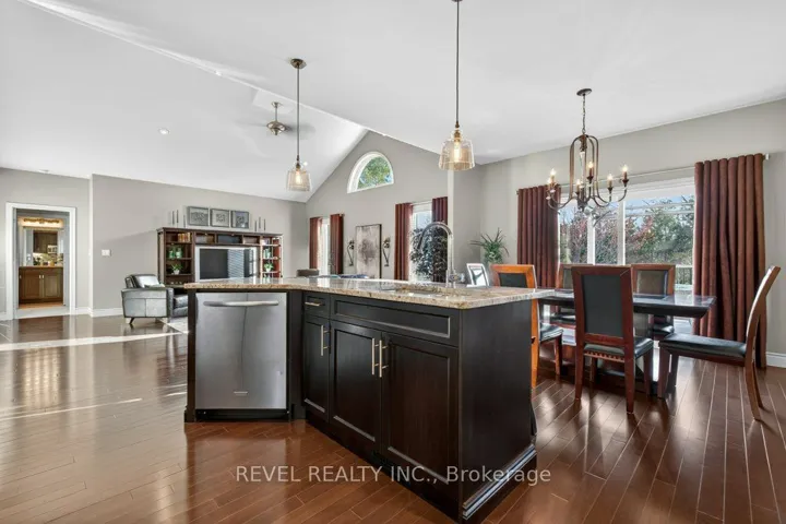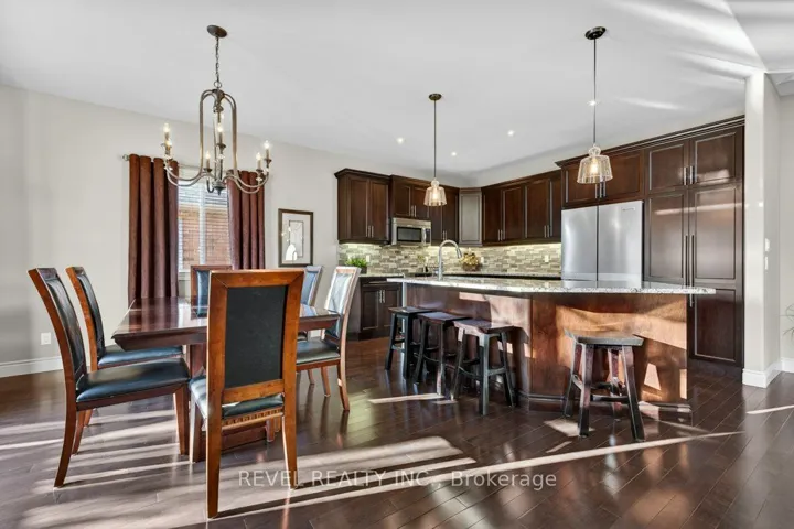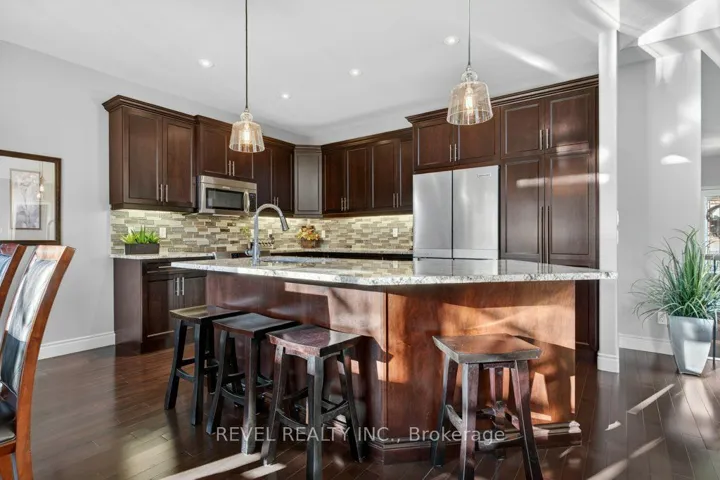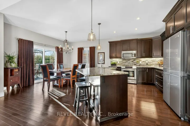 +"PublicRemarks": "Welcome to 26 Scenic Drive in Settlers Ridge-one of Belleville's most sought-after family neighbourhoods. Step into refined living in this beautifully upgraded, move-in ready home, where every detail has been thoughtfully curated for comfort, style, and functionality. Situated on a premium, private lot, the property features professional landscaping and a full-yard irrigation system for effortless maintenance. Enjoy outdoor living on the composite deck with gas BBQ hookup, while the covered front porch offers a warm and welcoming first impression. Inside, the home opens into a bright and airy great room with soaring 12' vaulted ceiling and a seamless open-concept layout. Rich hardwood flooring flows throughout the main living areas, complemented by upgraded interior doors and an abundance of natural light from oversized windows. The kitchen is both timeless and functional, featuring premium cabinetry, granite countertops, tile backsplash, under-cabinet lighting, and a large pantry-ideal for both everyday living and entertaining. The main level offers three well-appointed bedrooms, while the bathrooms feature granite countertops and updated fixtures for a clean, cohesive feel. The laundry/mudroom is enhanced with custom cabinetry, a granite countertop, and direct access to the double garage. The fully finished lower level expands your living space with durable laminate flooring, a spacious recreation area, and a stunning cultured stone feature wall with a built-in gas fireplace. A custom-designed wet bar with granite countertops and a stone accent wall creates the perfect setting for entertaining. An additional bedroom with a walk-in closet and a beautifully finished 4-piece bathroom complete this level, along with a large storage room offering plenty of space to keep everything organized. This home offers the perfect blend of thoughtful upgrades, functional layout, and elevated finishes-inside and out. A true turnkey opportunity in a sought-after neighbourhood."