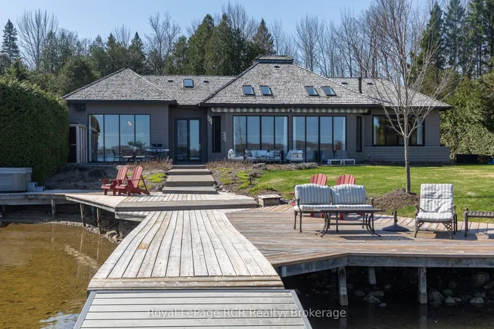 +"PublicRemarks": "First time ever offered, this exceptional Lake Eugenia residence has been meticulously maintained by its original owners and represents one of the most compelling full-time waterfront homes on the lake. From the moment you enter, sweeping, unobstructed views draw you through the space, with floor-to-ceiling windows and expansive lakeside doors creating a seamless indoor-outdoor connection and filling the home with natural light. Offering over 5,000 sq ft of thoughtfully designed living space, the main level is ideal for both everyday living and entertaining. A spacious kitchen anchors the home, flowing effortlessly into the family room, dining area, and living room; each finished with refined materials and architectural detail. The primary suite is a true retreat, capturing stunning waterfront views and featuring a luxurious 5-piece ensuite and separate dressing room. Two additional generously sized bedrooms and a full bath complete this level. A separate adjoining wing provides rare flexibility, with a private side entrance, coat room, and a 17'2" x 18'11" gym, easily convertible to a garage or additional living space. Above, a private guest suite with its own balcony offers ideal accommodation for family or visitors. The fully finished lower level adds further versatility, with a second family room, two additional bedrooms, a 3-piece bath, and ample storage. The outdoor setting is where this property truly distinguishes itself. Enjoy a rare, owned 100-foot waterfront (not leased from OPG), complete with dock and expansive decking. Take in breathtaking 180-degree lake views - among the finest on Lake Eugenia. Designed for year-round enjoyment, the grounds feature a lakeside boardwalk, multiple patios, sauna, and hot tub. Located 10 minutes from the private Beaver Valley Ski Club and 30 minutes to Blue Mountain, this is a rare opportunity to secure a four-season waterfront lifestyle on one of the region's most sought-after lakes"