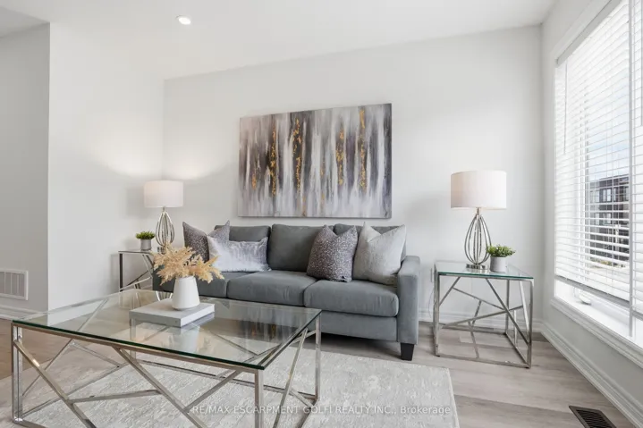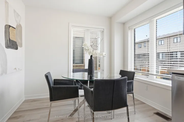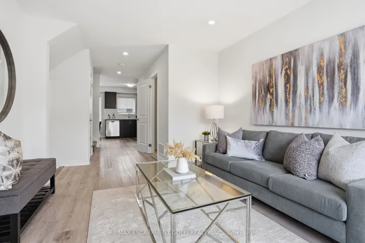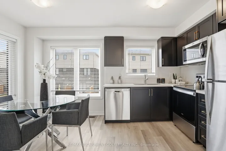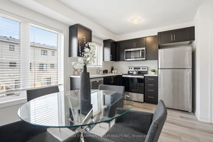 +"PublicRemarks": "Welcome to 32 Radison Lane in Hamilton. This beautifully maintained end unit townhouse offers three levels of bright and functional living space with thoughtful upgrades throughout. Enjoy the luxury of a maintenance free lifestyle that includes snow removal and lawn care. With windows on multiple sides, this home enjoys additional natural light and a spacious feel that sets it apart. The main level features an inviting open concept living and dining area, perfect for both everyday living and entertaining. The upgraded kitchen showcases quartz countertops, a stylish tile backsplash, stainless steel appliances, and ample cabinetry, while additional pot lights enhance the modern atmosphere. Premium vinyl flooring and upgraded porcelain tile add both durability and elegance. Upstairs, you will find three generously sized bedrooms, including a spacious primary retreat featuring two walk in closets, offering exceptional storage and comfort. Brand new paint and carpeting throughout the upper level adds a fresh and cozy touch. The home includes 1.5 well appointed bathrooms designed for convenience. The lower level provides flexible additional living space, ideal for a home office, gym, or recreation area, with direct access to the attached garage and backyard with private rear patio with gas hook up for your bbq. Located in a master planned community right next to the Red Hill Valley Pkwy. Close to shopping, dining, transit, and excellent schools, this move in ready home offers comfort, style, and convenience."