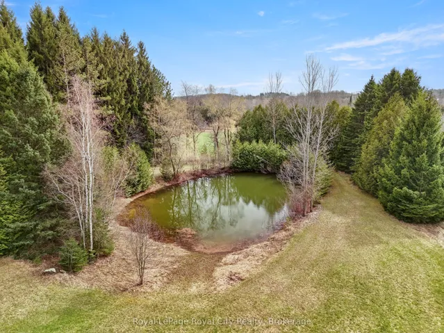 +"PublicRemarks": "Set across 48 breathtaking acres of rolling countryside with 30 workable (currently in hay), this exceptional farm offers a lifestyle that feels worlds away. Begin your mornings with coffee overlooking your private pond, spend afternoons exploring manicured gardens or the scenic Cataract Trail right from your backyard, and unwind in the evening as golden sunsets stretch endlessly across open fields. At the heart of the property, a beautifully renovated bungalow blends refined comfort with timeless country charm. Thoughtfully designed for both everyday living and effortless entertaining, the home also features a fully legal basement apartment-ideal for extended family, guests, or added income-while maintaining complete privacy. The property is exceptionally well-equipped for hobby farming or rural living, featuring a classic bank barn with hydro, water, stalls, and hay loft, a spacious driveshed, and a detached 2-car garage with a finished studio above, perfect for creative pursuits or a private workspace. Extensively renovated in 2013, the home has seen numerous recent upgrades, including a new septic system ('24), cedar deck ('25), updated roof shingles ('16), A/C ('16), attic insulation ('23), water systems, and more, offering peace of mind and modern efficiency. Tucked away on a quiet country road, 10 minutes outside of Fergus, 15 minutes outside of Orangeville and 30 minutes to Guelph. This is more than a home-it's a private retreat, a lifestyle investment, and a rare opportunity to own a truly special piece of countryside."