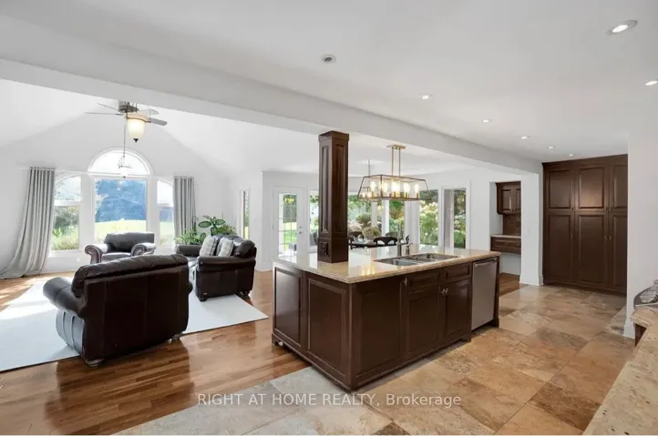 +"PublicRemarks": "Nestled on an unparalleled 3/4 acre lot in the heart of Schomberg, this beautifully maintained 4-bedroom home offers the perfect blend of space, comfort, and lifestyle. Featuring a stunning 2-storey great room with soaring ceilings and abundant natural light, the home showcases a seamless open-concept layout ideal for both everyday living and entertaining. The chef-inspired kitchen is the centerpiece, complete with a large island and walk-out to a covered loggia-perfect for indoor-outdoor gatherings. The expansive breakfast area overlooks a private, lush backyard surrounded by mature trees, offering endless potential for landscaping, recreation, or a future pool. Upstairs, the spacious primary retreat features dual walk-in closets and a well-appointed ensuite. Convenient second-level laundry adds to the home's functionality. Additional bedrooms are generously sized with great natural light. The property also includes a detached 20' x 30' garage/workshop with 10' ceilings and rough-ins for water, power, cable, phone, and gas-ideal for hobbyists or additional storage. Additional highlights include heated tiled floors and sprinkler systems for both front and rear garden beds. Located just 4 minutes to Hwy 9 and within walking distance to schools, Main Street shops, restaurants, butcher, and grocery-this is a rare opportunity to enjoy country-style living with urban convenience."