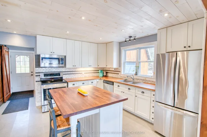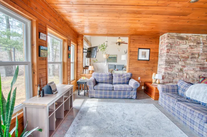 +"PublicRemarks": "Private Buck Lake waterfront retreat with over 100 ft of shoreline on a serene bay, just 20 min north of Hwy 401. Custom 3-level side-split with bright living spaces, upper-level primary suite with ensuite and bonus room, plus stunning water views. Fireplace and pellet stove for cozy evenings and winter days Major updates include septic and water pumps, new eaves on the main house. Double garage with loft potential for guests or studio. Newer dock system for boating, swimming, and lakeside enjoyment. Exceptional privacy and year-round living. House is located almost at the end of the lane. Don't miss this year round home or perhaps cottage retreat"