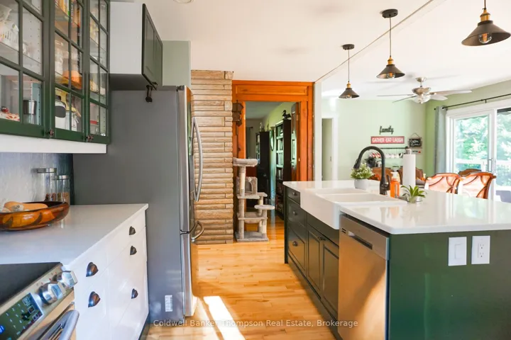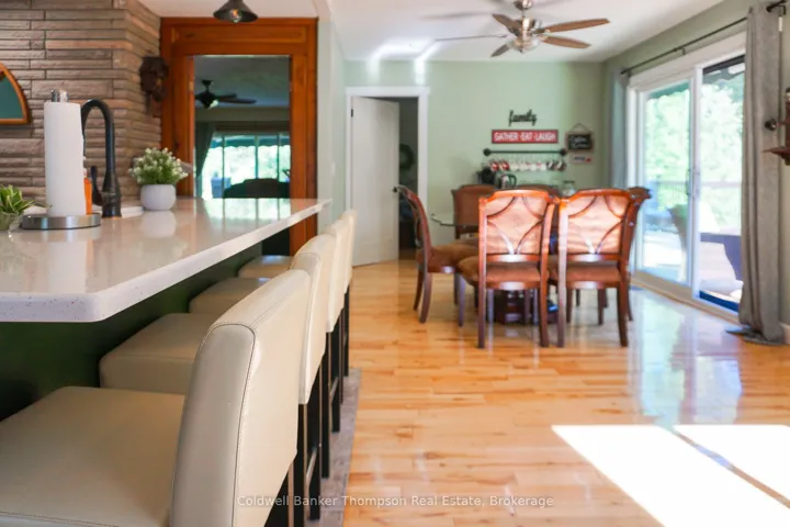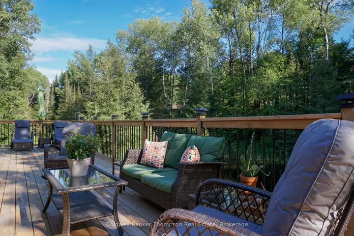 +"PublicRemarks": "Room to Grow, Space to Breathe-All Just Minutes from Town! Set on nearly 20 acres and located just 5 minutes from South River, this charming bungalow offers the perfect balance of privacy, nature, and convenience. Recent updates include freshly painted main floor living room walls and fireplace, along with freshly painted basement concrete floors-adding a clean, refreshed feel to the lower level, and enhancing the home's overall appeal. A tree-lined driveway welcomes you in, with ample parking and a garage featuring backyard access-ideal for storing bikes, sleds, or outdoor equipment. Inside, a bright foyer opens to a beautifully renovated eat-in kitchen with a large island and family-friendly dining area, with views of the pond and access to the wrap-around deck. The open-concept main floor also features a cozy living room, laundry area, a 4-piece bath, and a spacious primary bedroom, while a second bedroom just off the coffee bar area is perfect for children or guests. The walk-out lower level offers excellent additional living space, including a rec room with a wood fireplace, two bedrooms, and freshly refreshed basement floors, along with a fully finished second bathroom-ideal for growing families or hosting visitors. Step outside to your private pond with dock, perfect for summer swimming and winter skating, along with a small barn, a separate workshop/outbuilding, and frontage along Black Creek, a known trout habitat. Located just 10 minutes from Mikisew Provincial Park and within easy reach of local amenities including groceries, restaurants, pharmacy, and the LCBO, this property offers a rare combination of rural lifestyle and everyday convenience."