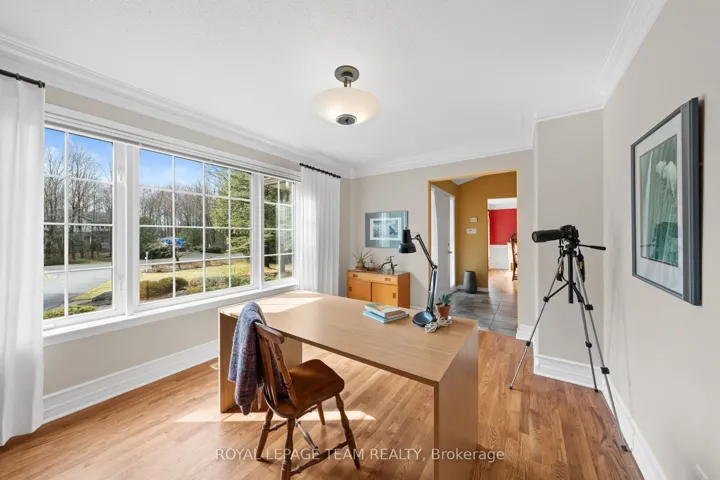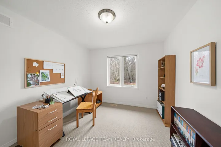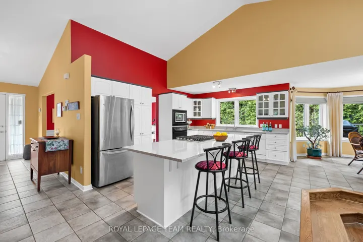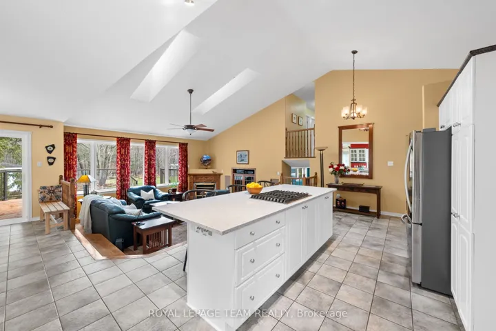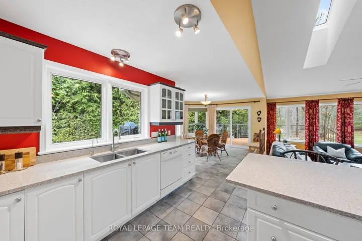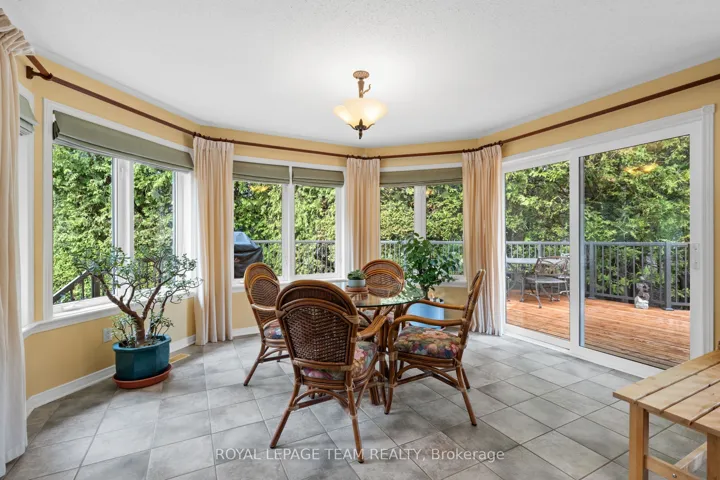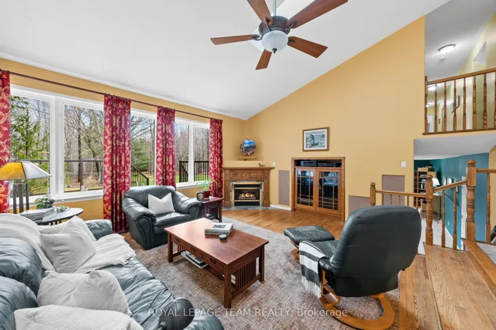 +"PublicRemarks": "Nestled on a beautifully treed 0.96-acre lot in an established Greely neighbourhood, this custom-built property by John Gerard Homes offers timeless curb appeal with a brick façade, interlock walkway, and landscaped gardens that create an inviting first impression. Inside, a formal dining room with wainscoting sets an elegant tone, flowing into an open-concept main floor filled with natural light. Cathedral ceilings enhance the sense of space and openness throughout, while large windows capture views of the surrounding landscape. The kitchen features crisp white cabinetry, recently updated quartz countertops, and a centre island designed for casual dining. It opens seamlessly to the breakfast room and family room, highlighted by skylights and a natural gas fireplace. A living room currently serves as a private main floor office providing a quiet workspace. The primary bedroom is located on the upper level and features a spacious walk-in closet and a five-piece ensuite. Two additional bedrooms and a full bathroom complete this level. A few steps down from the main level, a generous recreation room provides additional living space. The finished lower level includes a versatile flex room with a spacious closet. Also, leading from this flex room there is a wine cellar / cold room. Outdoors, the backyard is framed by mature trees and cedars, creating a private setting to enjoy throughout the seasons. A raised deck and gardens complete the outdoor setting."