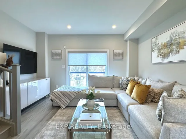 +"PublicRemarks": "Modern three-bedroom Di Cenzo-built townhouse for lease in Ancaster's Monterey Heights, set on a quiet crescent minutes from Ancaster Smart Centre, Highway 403, and multiple golf courses. Fully carpet-free across all three levels. Smart layout that works for professionals, small families, and roommates. Main floor offers inside garage access, a three-piece bathroom, and a flexible third bedroom that doubles as a home office or guest room. The second level is the central living space, open-concept and carpet-free, with a kitchen featuring stainless steel appliances, modern cabinetry, and a quartz island with seating. Dedicated dining and living areas with room for a work-from-home setup.The third-floor primary retreat includes a private ensuite and two closets. A second bedroom, full bathroom, and upper-level laundry complete the top floor. Two parking spaces total (garage plus driveway).Close to Mc Master, Redeemer, Meadowlands shopping, and direct 403 access to Hamilton, Burlington, and Oakville."