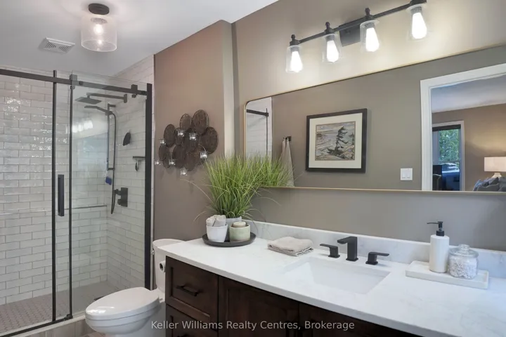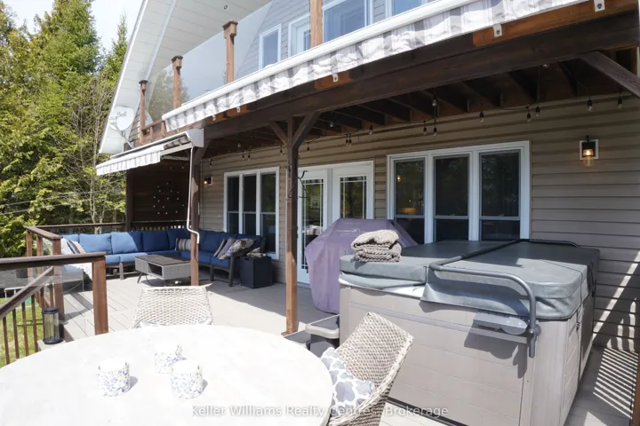 +"PublicRemarks": "Welcome to 55 Devils Glen, an elegant, move-in ready retreat where timeless comfort meets elevated living. Thoughtfully updated and impeccably maintained, this exceptional residence is ideal for families, entertaining, or creating unforgettable moments with children and grandchildren. At the heart of the home is a custom-designed kitchen featuring quartz countertops, quality craftsmanship, and an inviting layout that flows seamlessly into the stunning 2017 addition. Find a propane fireplace that continues to operate during power outages, blending everyday luxury with peace of mind. The main living area also features a charming wood-burning fireplace, creating the perfect ambiance for cozy evenings and relaxed entertaining. Upstairs, you'll find three beautifully appointed bedrooms, including a serene primary suite with private deck access. The washroom off the living room is enhanced by a custom-built vanity, adding warmth, character, and designer style. The true centerpiece of this remarkable property is the direct waterfront setting, a rare and inviting shoreline designed for making lifelong memories with easy access to the water, it is ideal for children and grandchildren to play, swim, and enjoy endless summer days along the shore. A charming waterfront bunkie offers the perfect space for guests. Adding even more versatility is the detached shop with a finished loft, perfect for guests, hobbies, creative space, or additional family enjoyment. Step outside to your own private outdoor oasis featuring a new composite deck (2025), a durable steel roof, and beautifully curated spaces for gathering or unwinding. The hot tub (2020), complete with a new pump (2025), delivers a spa-inspired retreat in the comfort of home. Premium mechanical updates include a furnace and water heater (2018), along with a professionally serviced Culligan water system complete with iron breaker, water softener, tannin filter, and UV light. Appliances are approximately 3 years old."