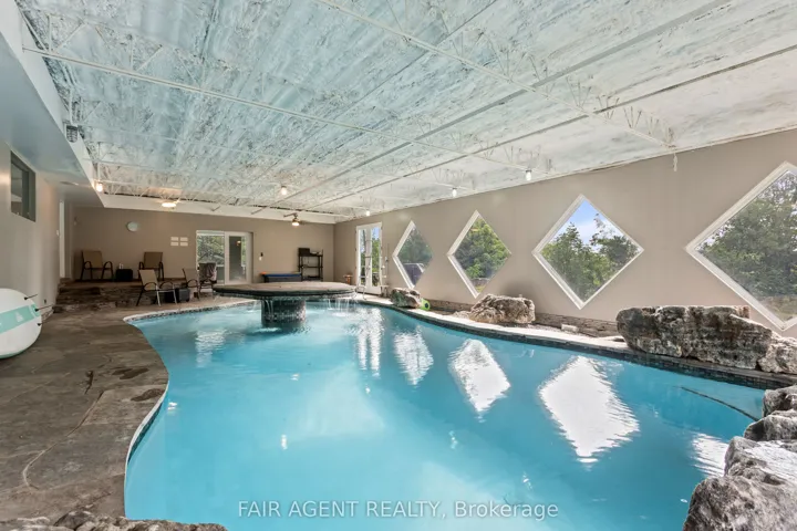 +"PublicRemarks": "Set on nearly 24 acres just north of Ailsa Craig, this property offers a landscape that truly stands out. Rolling land, mature trees, open sky, and a mix of pasture and wooded areas create a setting that feels both expansive and private. A pond and winding ravine add natural character, offering space to explore, unwind, and take in the changing seasons right in your own backyard. The home is warm and welcoming, with 4 bedrooms and 5 bathrooms across thoughtfully designed living spaces. Large windows draw in natural light and connect the indoors with the surrounding landscape, while the sunroom, with its north and east-facing exposure, provides a peaceful spot to start the day with sunrise views across the property. The main living areas feel comfortable and connected, well-suited for both everyday living and gathering with family and friends. A standout feature is the indoor heated pool, powered by a Heatmor system, offering year-round enjoyment and a unique layer of comfort to the home. Outbuildings and land features add function and flexibility. The large two-level shop is a highlight, with a spacious main level ideal for equipment, projects, or storage, and an upper loft finished as a versatile bonus area, suited for a games room, hangout space, or workspace. The space adapts easily to a variety of needs. The greenhouse extends your growing season, while the surrounding acreage offers room for hobby farming, recreation, or simply enjoying the privacy and natural setting. Practical updates include a recently cleaned septic system with two new risers installed, along with a hookup in place for a backup generator. With its combination of natural beauty, usable land, and a well-appointed home, this property offers a rural lifestyle that feels both comfortable and full of potential."