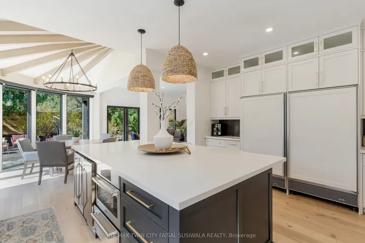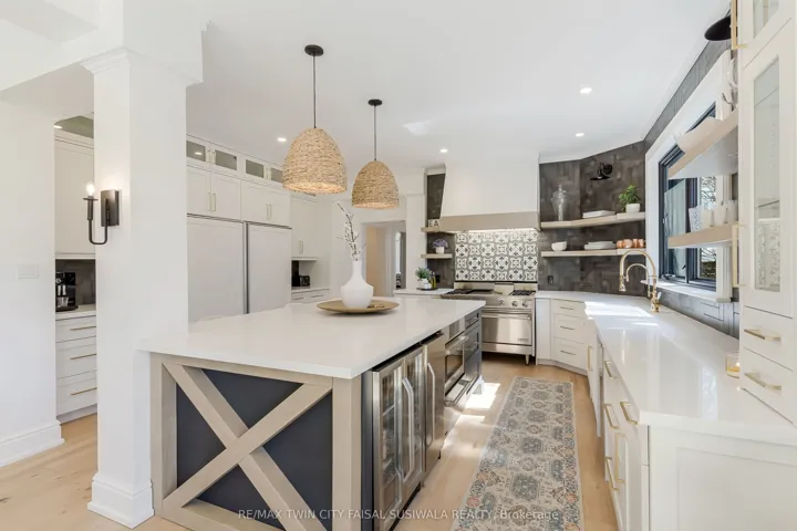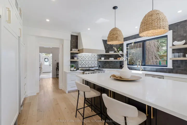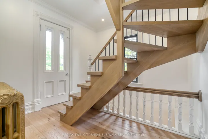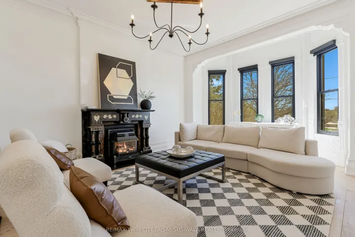 +"PublicRemarks": "FROM 1888 WITH LOVE-IN THE HEART OF WEST GALT. Step into a masterpiece of 19th-century architecture and 21st-century luxury at 24 Park Avenue, a double-brick 1888 home that commands attention from its prestigious double lot overlooking the verdant canopy of Dickson Park. This is not just a residence but a sensory experience, having undergone a total down-to-the-studs transformation in 2022 by RVC Interiors to marry historic soul with avant-garde sophistication. The journey begins on the new IPE wood wraparound porch and leads into a sanctuary of light and warmth, where brand-new Andersen windows frame views of the Grand River and fresh hardwood floors stretch across an expansive layout. Comfort is felt in every step with radiant in-floor heating flowing through the main entrances, family room, kitchen, and every designer bathroom. The kitchen is a culinary tour de force, anchored by a massive waterfall island and outfitted with a commercial-grade oven, warming drawer, and integrated beverage center for the ultimate host. Retreat to the principal suite, a breathtaking volume of space defined by soaring ceilings, exposed beams, and a bespoke dressing room that leads to a spa-inspired ensuite featuring a private six-person sauna and a classic clawfoot tub. The luxury extends to the upper-level loft, where herringbone floors, a marble-clad fireplace & stunning bathroom create a private world for guests. Outside, the estate functions as a private compound with manicured lawns and professional lighting that illuminate the new fencing and gates. The detached carriage house is a marvel of its own, spray-foam insulated and heated by natural gas, offering an oversized two-car garage below and a mezzanine flex space above, complete with its own fireplace, perfect for a secluded home office or gym. With room for ten-car parking and situated just steps from the historic shops and upscale dining of West Galt, this estate represents the pinnacle of refined living in the region."