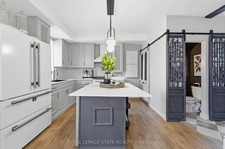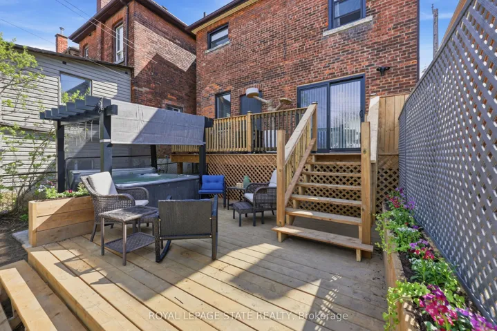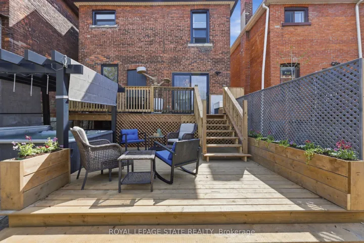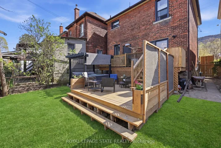 +"PublicRemarks": "Experience the perfect fusion of 1899 character and modern design in this solid-brick Victorian located in the sought-after Blakeley neighborhood. Fully modernized for ultimate peace of mind, this home boasts newer windows, a 200-amp electrical panel and all-new electrical and plumbing completed in 2024. The interior opens with a striking checkered foyer leading into a sophisticated main floor, anchored by a living room featuring a sleek marble-patterned fireplace surround and elegant matte-black cabinetry. The heart of the home is the chef's kitchen, showcasing premium white appliances, a Black center island with quartz counters and custom cabinetry with stylish rattan inserts. This space flows seamlessly into a dedicated coffee bar and a sun-drenched dining area with sliding door access to the rear deck. Upstairs, the primary retreat offers a boutique atmosphere with custom wall paneling and gold sconce lighting. The spa-inspired bathroom is a true showstopper, featuring a freestanding soaking tub, a massive black-framed glass shower and a double vanity set against a marble-veined feature wall. The outdoor oasis is designed for entertaining, featuring a multi-tier deck that leads to a private hot tub under a modern black pergola, all framed by custom planters and designer privacy fencing. This move-in-ready masterpiece offers a luxury lifestyle and mechanical reliability just steps from Gage Park and Hamilton's best local amenities."
