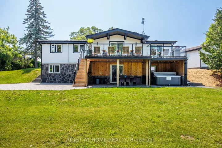 +"PublicRemarks": "Welcome to your dream getaway- Only 150-170km from the East side of Toronto! This Cozy and Functional Fully renovated 4 season Home offers approximately 2122 sq.f of Living Space and features Lake Front, Breathtaking views of Water and Mature Trees Serene. Located on a maintained municipal road for year-round accessibility, it ensures easy winter visits. Inside, enjoy a spacious Living Rm with vaulted wooden Beams ceilings and a cozy Woodburning Fireplace, complemented by warm Hardwood floors, Opened to Modern Kitchen with Dark Quartz Countertops & Backsplash and Pantry Cabinet. W/out to Lage Deck overlooking the Lake. Two large Bedrooms on Main floor, a 4-piece Updated Bathroom & 2pc Ensuite Powder Rm. offer you Relax and Functionality. Lower Floor boasts an additional 2 Bdrms with Custom B/I Closets with Organizers, Spa-like 3 pc. Modern Bathroom, Souna and Laundry Rm make your stay pleasant and unforgettable. The Second Kitchen is even more Impressive. Together with the cozy Family/Great Rm. Have walk-out access to covered Interlocking Stone Patio. Perfect for entertainment with an outdoor Shower and Salt water Hot Tub. And when you think that this is all, the sone Patio is leading you to a Summer Kitchen/Party Room with its own Heating/cooling Unit. Oversized Double Garage and 8 cars front Parking are giving you all the space you will need for your comfort. The panoramic Lake views are Unforgettable from Every Level and from Perfect for Entertainment West-facing Deck. Catch unforgettable western sunsets. The property also features Cooling/Heating Pump, reliable water source from a well, equipped with a water UV Treatment system, and fast-speed Internet to keep you connected. Ample parking for recreational toys, and beautifully landscaped grounds, this property is a true Haven. Just 1.5 - 2 hours Drive from Toronto GTA this one-of-a-kind property is the ideal escape you've been dreaming of!"