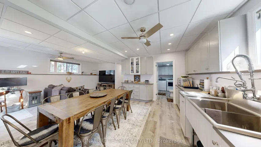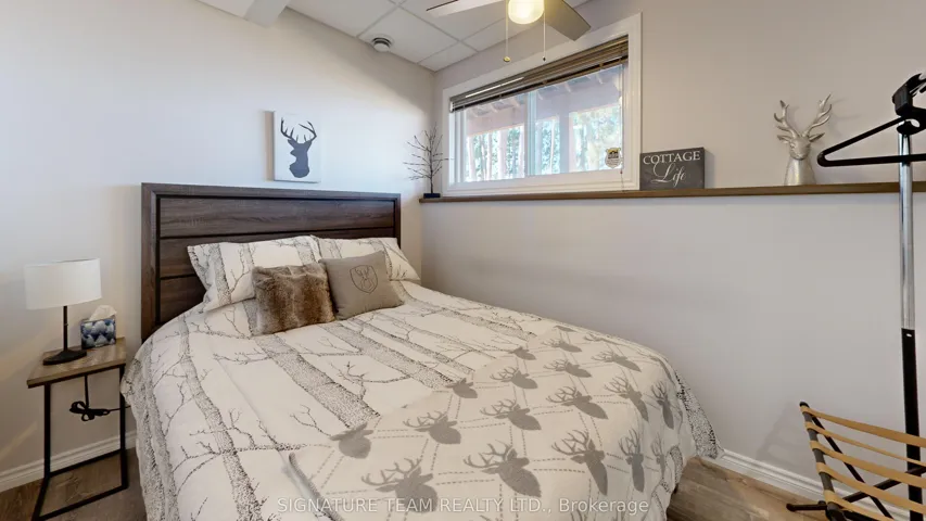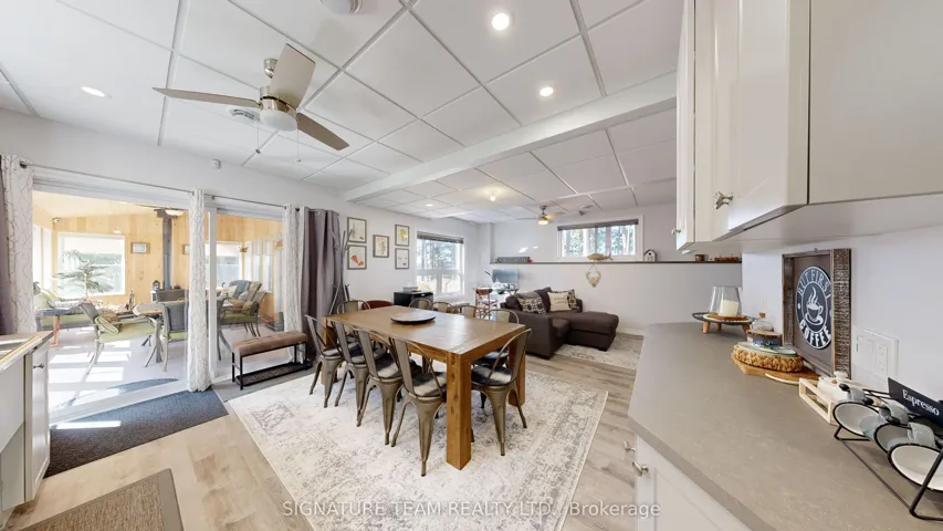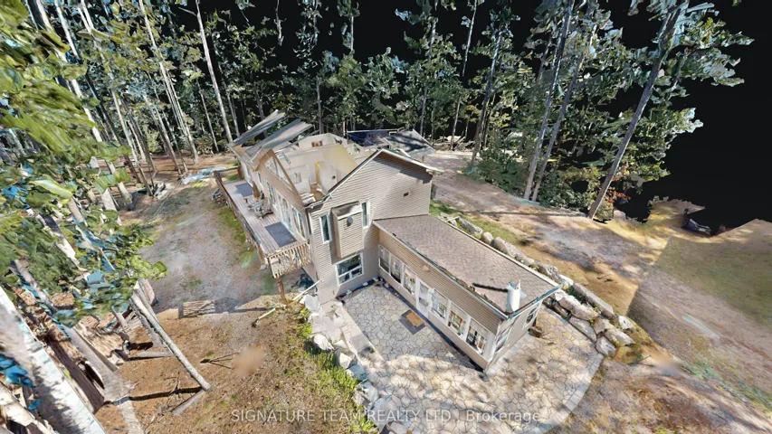 +"PublicRemarks": "A Round Lake Waterfront Property, with amazing sunsets from the main deck and sand beach that is over 1km long for walking! This home (built in 2017) offers 4 bedrooms, 3 baths, 2 full kitchens, and a gazebo that can be used all year round with wood airtight stove! Not to mention the 40ft x 30ft, 3 bay detached garage, automatic back-up generator (automatically powers up when the hydro goes out), 150ft of sandy shoreline and sandy lake bottom (zero weeds), excellent for swimming. Basement is fully finished (dry-core subfloor panels throughout), and boasts the 2nd kitchen and rec room for entertaining, a 3 pc bath/laundry, walk-out access to the gazebo, outside patio, and waterfront. All appliances are included. This property has all the features you would expect, and more, from a waterfront home and the view through the pines is amazing from the deck! The driveway from Round Lake Rd is shared with neighbors and a deeded right of way on title. Annual Road Maintenance fees is $400, includes snow plowing and minor grading of the road."
