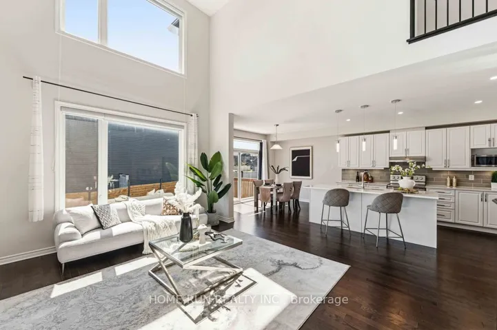 +"PublicRemarks": "Welcome to this STUNNING 4 bdrm + 3 baths detached home with south facing + oversized two double garage in the sought after Fernbank Crossings of south Kanata by EQ Homes. Step inside to a bright foyer, with hardwood and tile flooring throughout the main level. The thoughtfully designed layout includes a convenient walk-through mudroom/pantry leading into the upgraded kitchen, complete with granite countertops, stainless steel appliances, and a large central island-perfect for everyday living and entertaining.The eat-in area overlooks the fully fenced backyard, where you can relax with your morning coffee and enjoy sunshine all day long. The impressive great room boasts soaring 18 feet ceilings, enhanced by expansive windows that fill the space with natural light. Upstairs, the spacious primary bedroom features a luxurious ensuite with double sinks and an oversized walk-in closet. Three additional bedrooms are generously sized and well proportioned. The laundry room with window adds everyday convenience.The bright unfinished basement offers potential, complete with rough-in for a 3-piece bathroom. The oversized double-car garage provides extra space for larger vehicles or additional storage. Steps to new schools, including Maplewood Secondary School, Shingwàkons Public School, and St. Bernadette Catholic School, offering both public and French immersion programs.Enjoy the convenience of nearby shopping, dining, and amenities, including Walmarts, Superstore and Tanger Outlets Ottawa, all within easy reach delivering the perfect balance of suburban comfort and urban accessibility.A must see! Offers to be presented on May 4th at 6:00 PM. Seller reserves the right to review and may accept pre-emptive offers.Open house May 2nd 2-4pm."