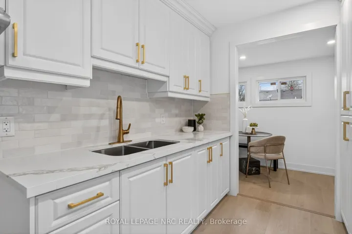 +"PublicRemarks": "Welcome to 374 Navy Street, located in the heart of Welland. This beautifully renovated bungalow has been updated from front to back, offering a perfect blend of modern finishes and comfortable living. Featuring 2 bedrooms and a bright, inviting living room with large new windows, the home is filled with natural light throughout. The brand-new kitchen is a true highlight, complete with quartz countertops, stunning brass hardware, and ample storage space. Just off the kitchen, the dining area provides a comfortable space for everyday meals and entertaining. The spa like bathroom showcases a stylish quartz vanity, elegant brass fixtures, and a beautifully tiled shower with a built-in niche. Luxury vinyl flooring runs seamlessly throughout, adding both durability and a contemporary touch. For added convenience, the laundry room is thoughtfully designed with additional cabinetry matching the kitchen, complete with brass hardware and a butcher block countertop, offering both function and style. Step outside to a generously sized backyard and parking for up to three vehicles. Ideally located close to schools, parks, grocery stores, and all essential amenities, this home is perfect for first-time buyers, downsizers, or investors."