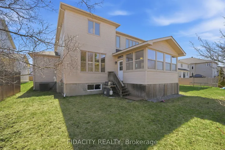 +"PublicRemarks": "Situated on Coyote Crescent, this modified Richcraft Fullerton is set on a premium lot backing onto a mature, treed area with a walking path and no rear neighbours, offering a private and peaceful setting.The main level features hardwood flooring throughout and a well-designed layout that balances open living with defined spaces. A front study offers a quiet work area, while the extended dining room is ideal for hosting larger gatherings and can be converted back to a separate sitting room and formal dining space if desired. The living room is anchored by a gas fireplace, creating a comfortable everyday living area. The kitchen includes quartz countertops and an island with seating, and opens into a screened-in porch that provides additional living space throughout the warmer months.Upstairs, the bedrooms are notably spacious, including two oversized front bedrooms with generous closet space. The main bathroom offers a functional split design, while the primary suite features its own fireplace, a large walk-in closet, and a well-appointed ensuite.The finished lower level offers a spacious rec room with custom cabinetry and built-in speakers. A bathroom rough-in is already in place, and there remains an extensive amount of storage space that could be reconfigured to expand the living area or accommodate a fifth bedroom.The custom three-car garage includes a double-deep bay and is equipped with an EV charger, offering exceptional space and added convenience for modern living.Located in a well-established, family-oriented neighbourhood, this home is surrounded by walking paths, parks, and highly regarded schools, making it an ideal setting for growing families."