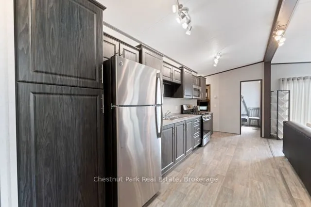 +"PublicRemarks": "Stunning renovation! This beautiful raised ranch home is set on a large private lot backing onto natural environment in Huron Haven Village, just minutes north of Goderich. The main level has been completely renovated and now features an open concept with new kitchen, huge center island, 3 bedrooms and updated bathroom. Quality laminate flooring, new doors, trim and pot lights have been installed throughout the main level as well. Summertime entertaining will be a pleasure on the large raised back deck, overlooking the creek and trees at the back of the property! The full lower level features a laundry room and potential for more living space as there are patio doors leading to the backyard and "rough-in" for a second bathroom. This is a great opportunity to purchase a spacious affordable home located in a year-round land lease community close to shopping, golf courses and the shores of Lake Huron! There's also a rec center and outdoor swimming pool located in the village! Bonus - fridge, stove, dishwasher, washer & dryer included!"