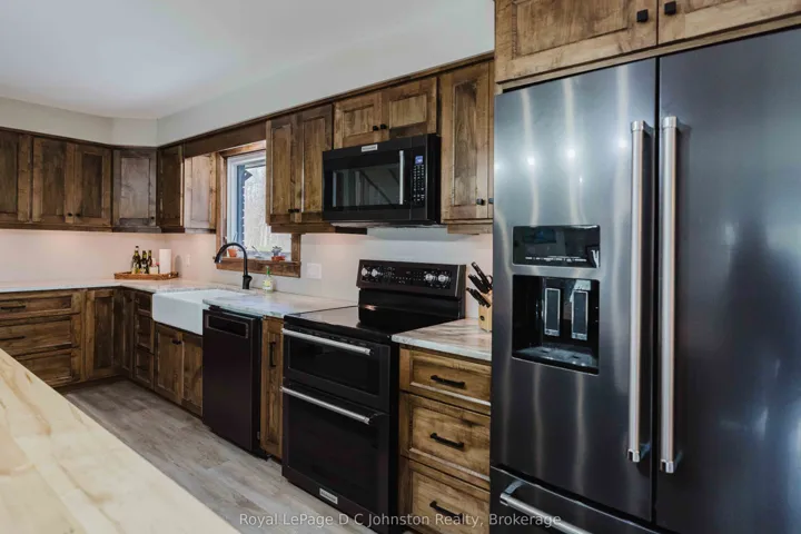 +"PublicRemarks": "This beautifully updated side-split offers the quintessential Southampton lifestyle, perfectly situated on a quiet cul-de-sac just a short walk to the sandy beach and featuring direct access to the scenic Rail Trail. The home has been meticulously maintained with a comprehensive list of high-end exterior improvements, including a newer roof, updated siding and insulation, and replacement windows and doors throughout the main and upper levels. At the heart of the open-concept floor plan is a stunning custom wood kitchen outfitted with quality appliances and a breakfast bar, flowing seamlessly into the dining and living areas with a walk-out to the rear grounds. The upper level hosts three spacious bedrooms, including a king-sized primary and a luxe main bathroom complete with a double vanity, soaker tub, and a separate tiled shower.The lower level serves as an ideal guest or family hub, featuring a fourth bedroom, a second full bathroom with laundry, and a generous family room anchored by a cozy wood-burning fireplace. For those seeking even more room, the basement offers excellent potential for additional living space or storage. Outside, the expansive pie-shaped lot transforms into a private "staycation" paradise; the backyard oasis is fully equipped for year-round enjoyment with a pool, sauna, hot tub, and a sheltered gazebo. Complete with a detached single garage, a concrete drive, and modernized mechanicals including a recently replaced furnace and water heater, this move-in-ready retreat is truly one of a kind."