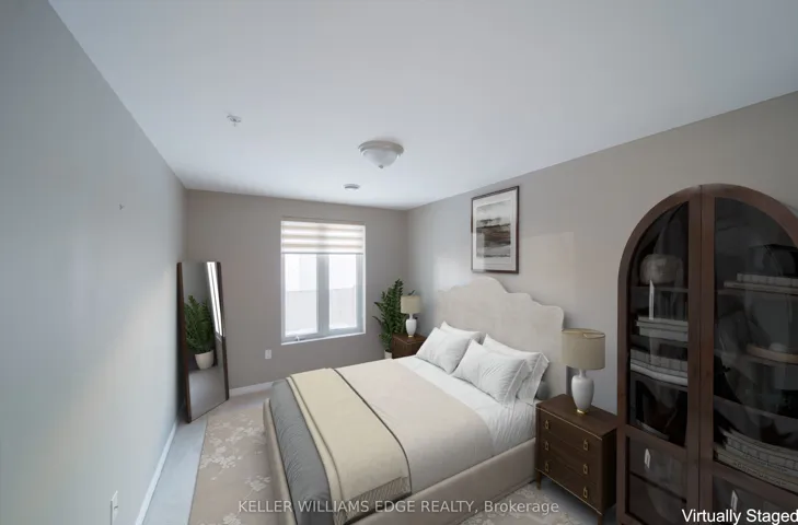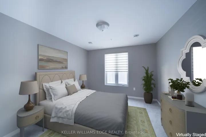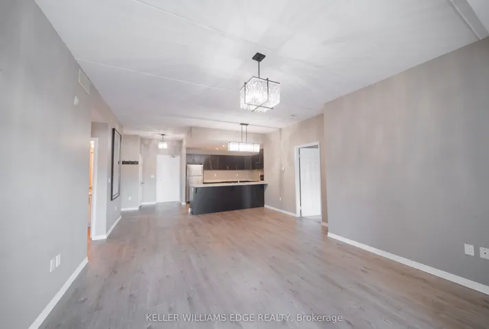 +"PublicRemarks": "Rarely found in newer condo buildings, this expansive 1,100 sq ft open-concept 2-bedroom, 2-bath unit offers a truly generous kitchen and living room layout that feels more like a home than a condo. Bright, spacious and thoughtfully designed with high ceilings and an accessible, open flow throughout. The kitchen features abundant cabinetry, a breakfast bar and a full dining area-ideal for both everyday living and entertaining. The split-bedroom layout provides excellent privacy. The primary suite includes an ensuite bath with oversized step-in shower, linen closet and mirrored medicine cabinet. A full-size laundry room offers side-by-side washer and dryer, laundry sink and excellent storage. Enjoy a private balcony and abundant natural light. Includes central air, owned Hot Water Tank, one surface parking space, owned basement locker, additional storage for patio furniture and bike storage. Well-maintained 3-storey building with exercise room, party/social room and hobby/workshop space. No underground parking or pool helps keep condo fees well controlled. Walk to shops, dining, groceries, parks, churches, transit, with easy access to Hwy 58, 406 & QEW."