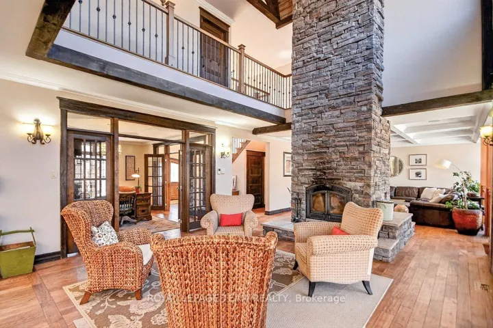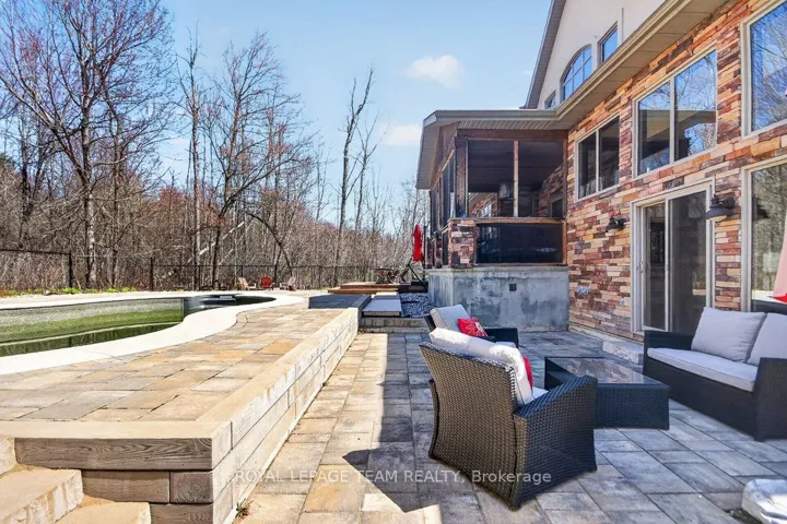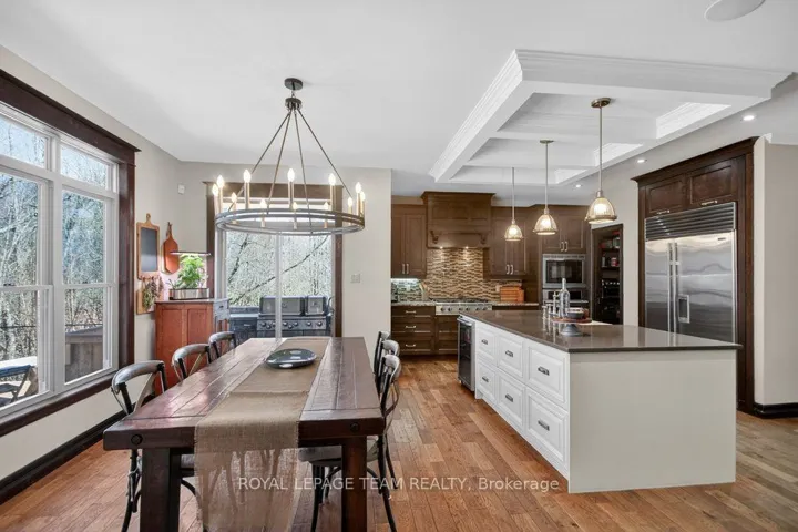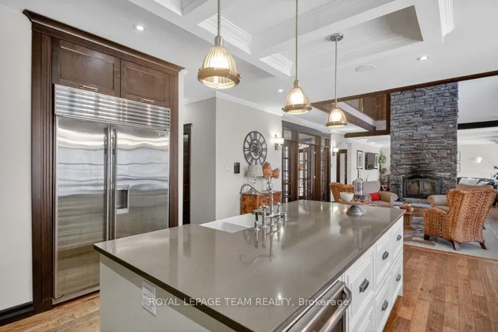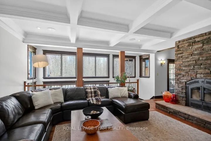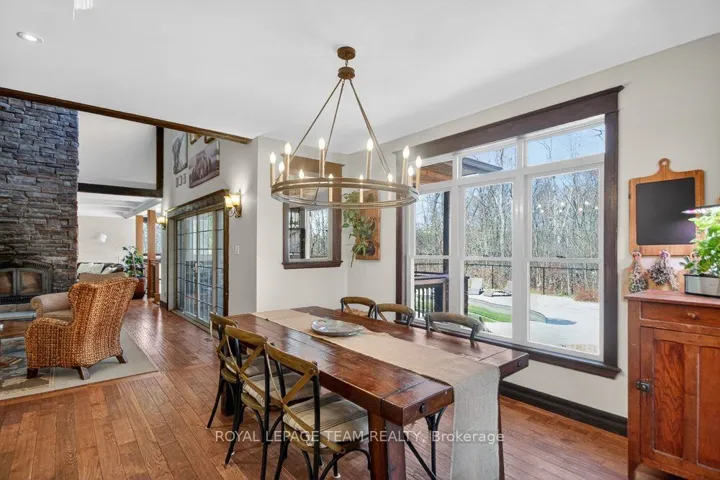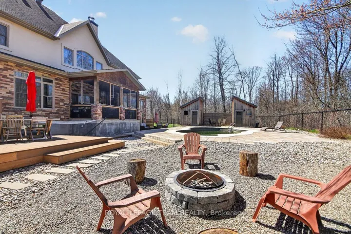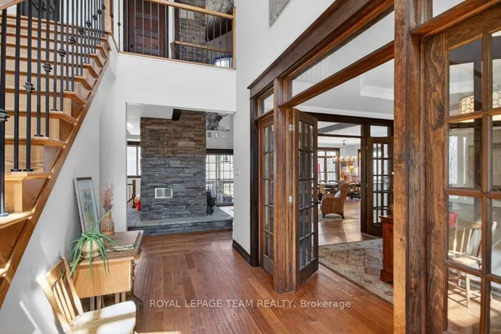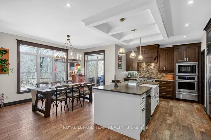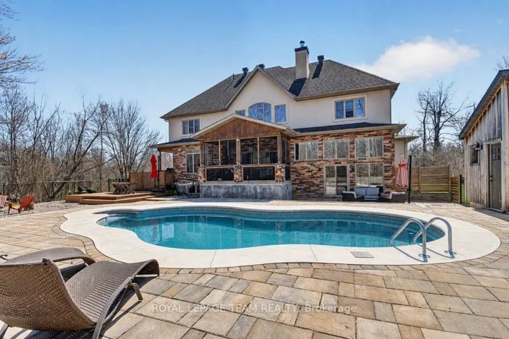 +"PublicRemarks": "OPEN HOUSE NEXT SUNDAY MAY 3, 2-4... BRING YOUR FAMILY...YOU WONT WANT TO LEAVE!!! Welcome to this stunning custom-built home in the heart of Greely, offering the perfect blend of luxury, warmth, & a charming Tremblant-inspired aesthetic. Nestled on a private, treed lined street with a spectacular lot of over 2 acres, this exceptional property provides both tranquility and space, just minutes from city conveniences . Step inside to a grand foyer with soaring ceilings and an abundance of natural light, setting the tone for the craftsmanship and elegance found throughout. Beautiful hardwood floors flow seamlessly across the main and upper levels, enhancing the home's inviting atmosphere. The thoughtfully designed layout features a main floor bedroom complete with a 4-piece ensuite-ideal for guests or multi-generational living. Upstairs, you'll find three generously sized bedrooms, each with its own private ensuite, including a luxurious primary retreat boasting a spa-like ensuite with a standalone soaker tub. The gourmet kitchen is a chef's dream, featuring a built-in oven, quality finishes, and a layout perfect for entertaining. A striking double-sided stone fireplace creates a cozy ambiance between principal living spaces. The fully finished basement offers radiant heated floors throughout and includes a full bathroom, providing additional comfortable living space year-round. Step outside to your private backyard oasis featuring a beautiful in-ground pool and spacious patio-perfect for relaxing or hosting summer gatherings. This one-of-a-kind property combines rustic charm with modern luxury in a truly picturesque setting. The radiant heating in the lower level is serviced by a dual hot water tank - one for in floor radiant heat and one side for household use replaced in 2024. Pool and sheds installed 2022. Operating costs are wonderful for this size home. $225 for gas and $240 for hydro per month."